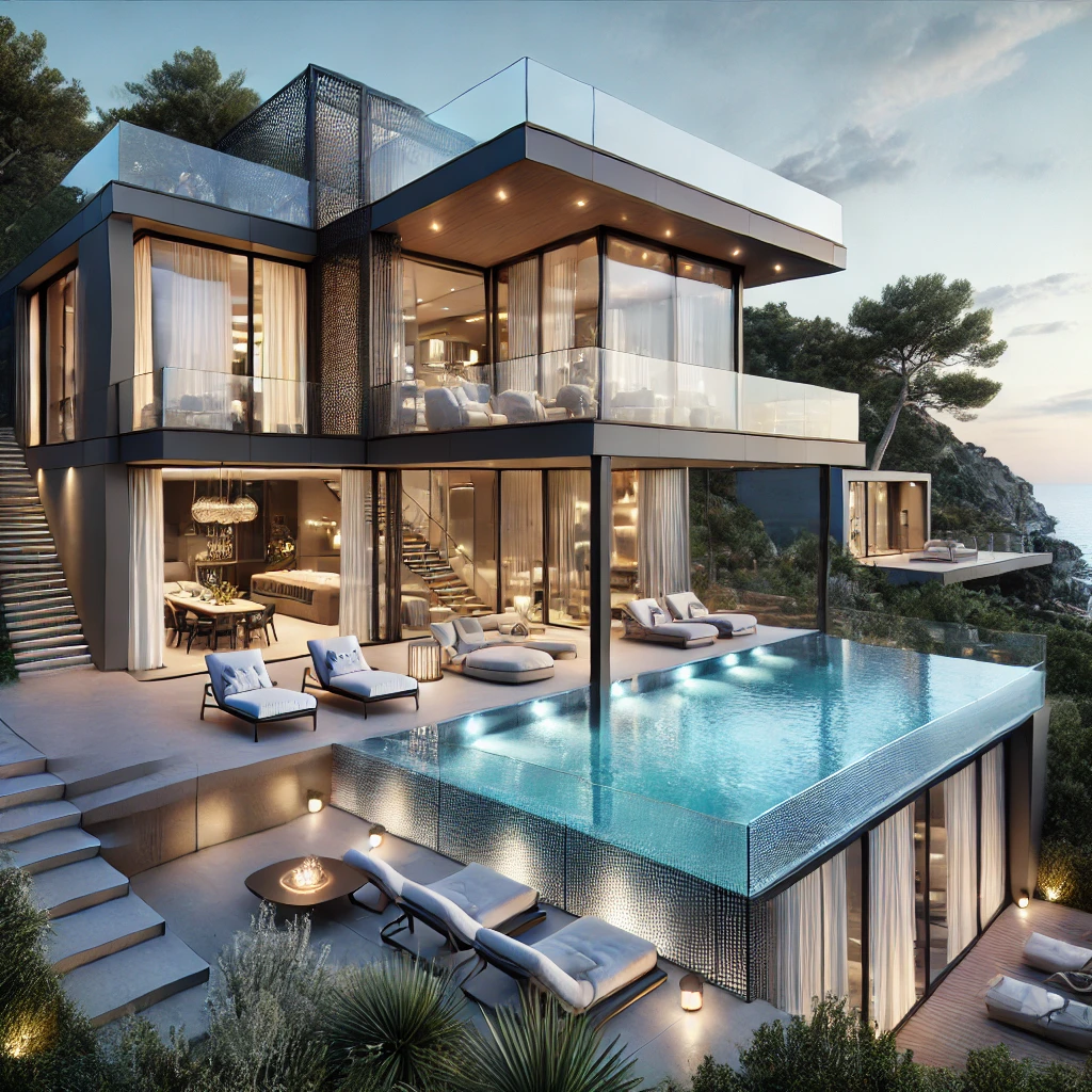 Данный исключительный дом был построен в 2008 году и располагает общей площадью в 1050 квадратных метров. Для его создания использовались материалы самого высокого качества, что делает его поистине уникальным. Вилла оборудована всеми видами современных технологий в дизайне, автоматизации, безопасности и комфорте. Среди множества роскошных особенностей выделяется библиотека, в которую можно попасть напрямую из просторного входного холла.
