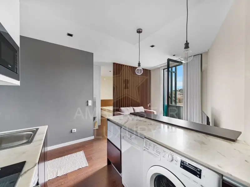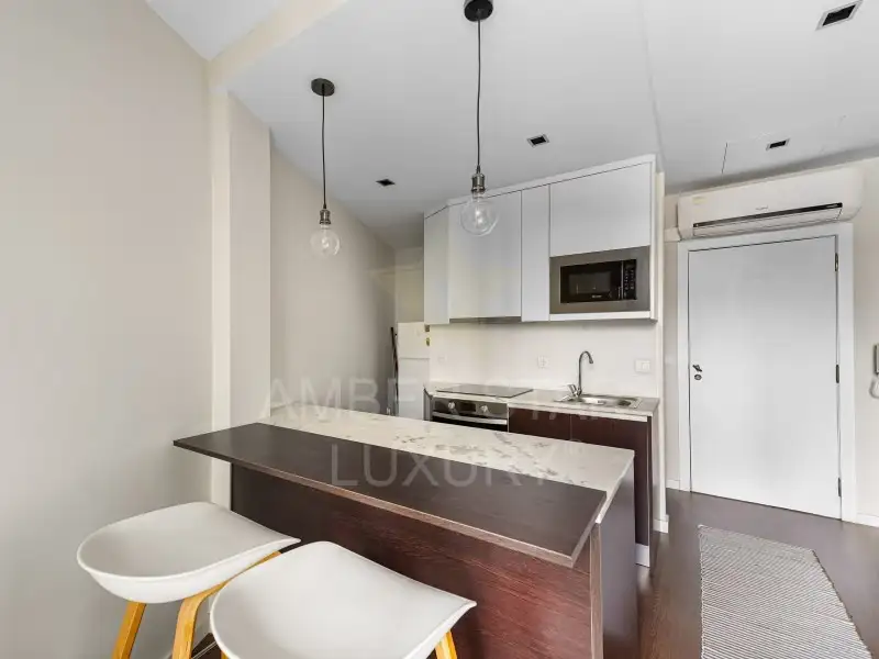 Офис, переоборудованный в студию, отремонтирован, меблирован и полностью оборудован. Общая площадь 33 м².