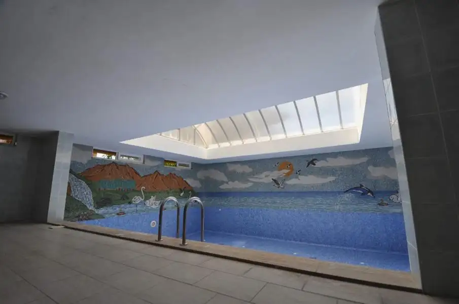 Что в комплексе: Комплекс имеет большую озеленённую территорию и 11 жилых, 5 этажных блоков, а также большой бассейн с водными горками, беседки для отдыха, спортивную баскетбольную и теннисную площадку, детскую площадку на улице, крытый бассейн, спортзал, сауну и хамам. В резиденции проживают преимущественно европейцы.