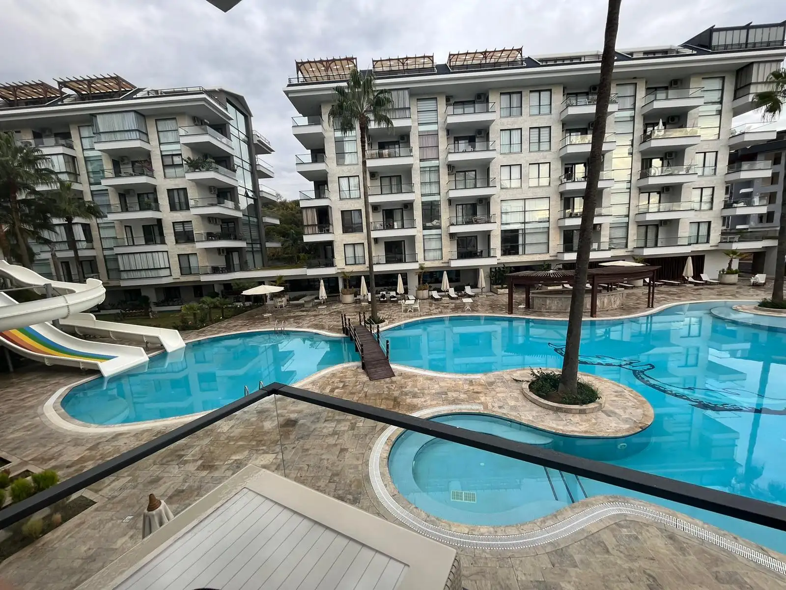Жильцы комплекса могут пользоваться всеми удобствами для активной и комфортной жизни: открытый и закрытый бассейны, аквапарк, фитнес-центр, детская игровая площадка, кинозал, массажные и сауны, просторные благоустроенные территории, охрана и управление комплексом.