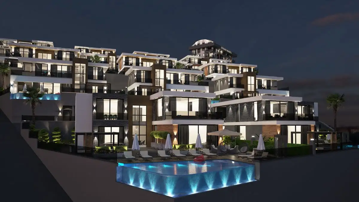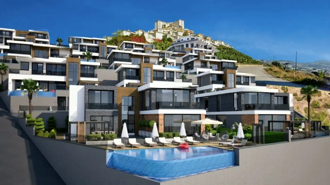 Что рядом: Комплекс находится в окружении красивых резиденций и роскошных вилл, поездка до городской инфраструктуры Махмутлара не займет более 5 минут вашего времени.
