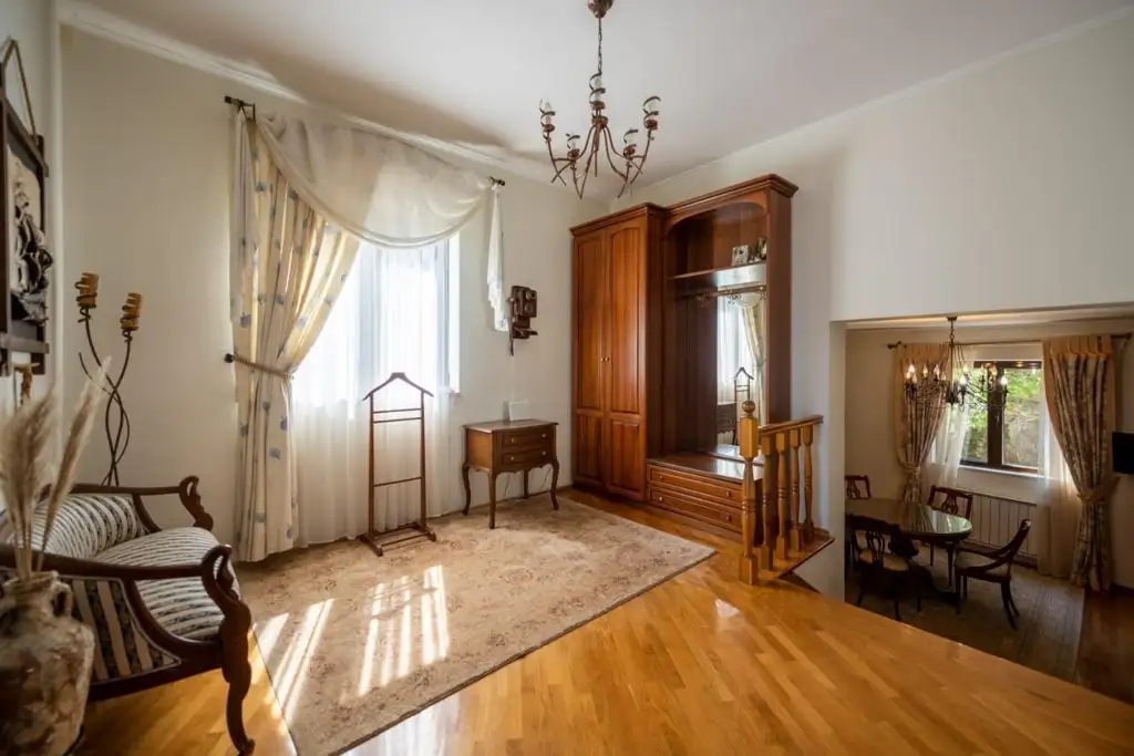 В доме имеется 4 спальни, сауна и спортивный зал. Дом полностью меблирован, оборудован всей необходимой бытовой техникой и готов к заселению. Отличный вариант для проживания, летнего отдыха вдали от шумных дискотек на море или для сдачи в аренду.