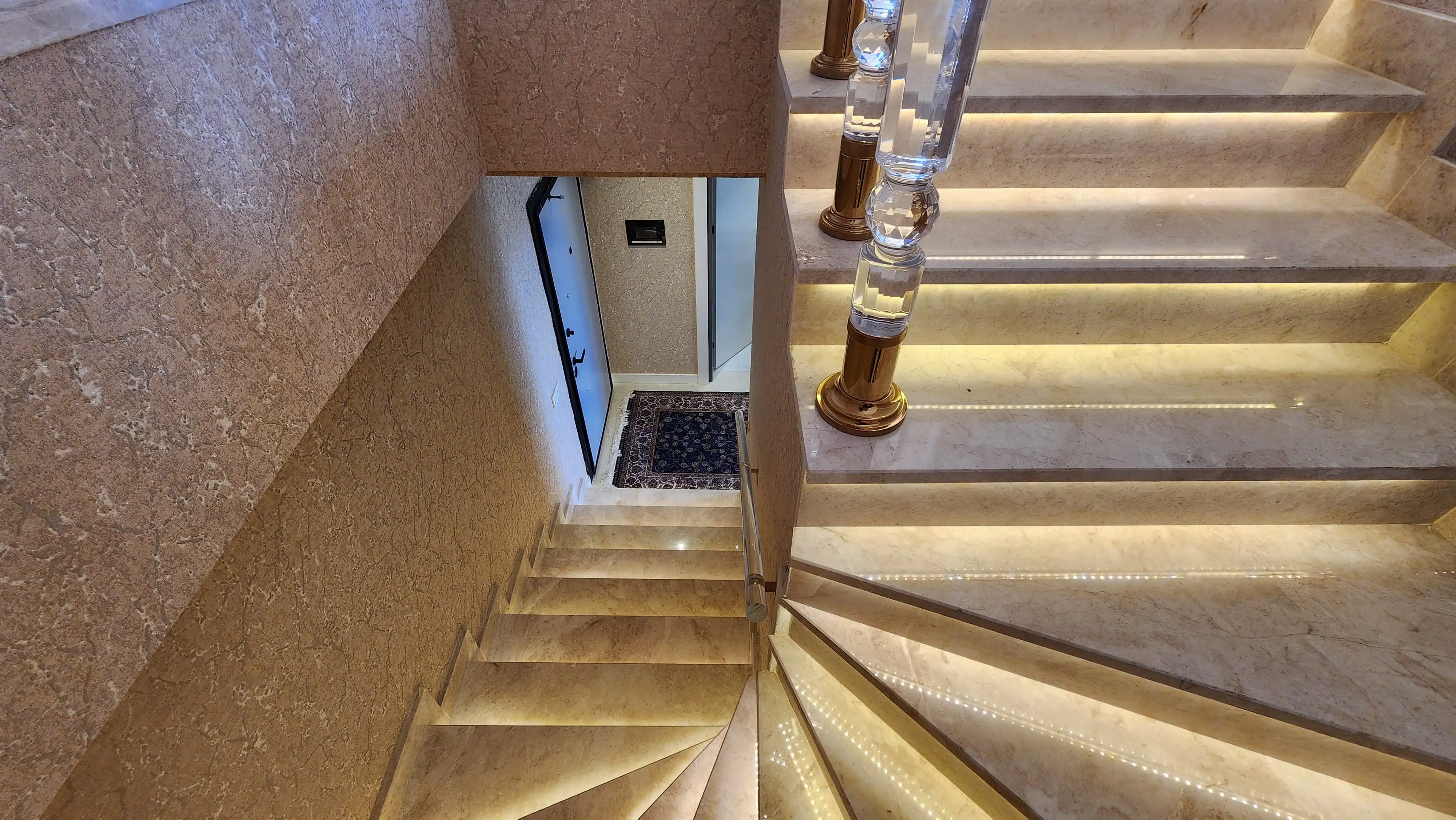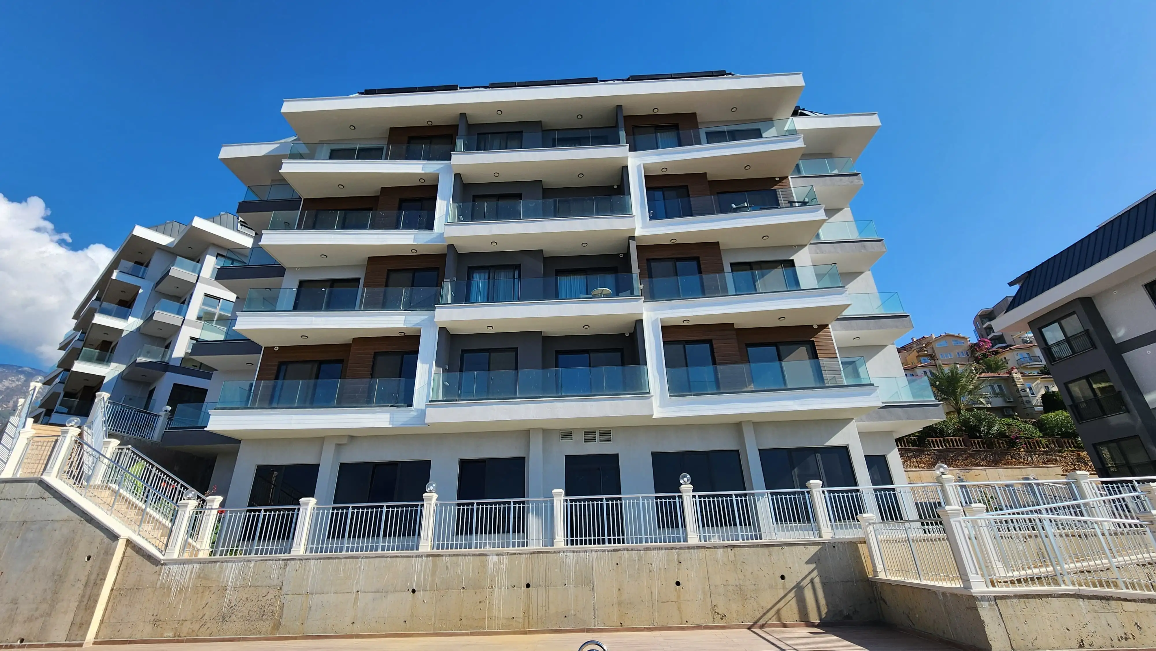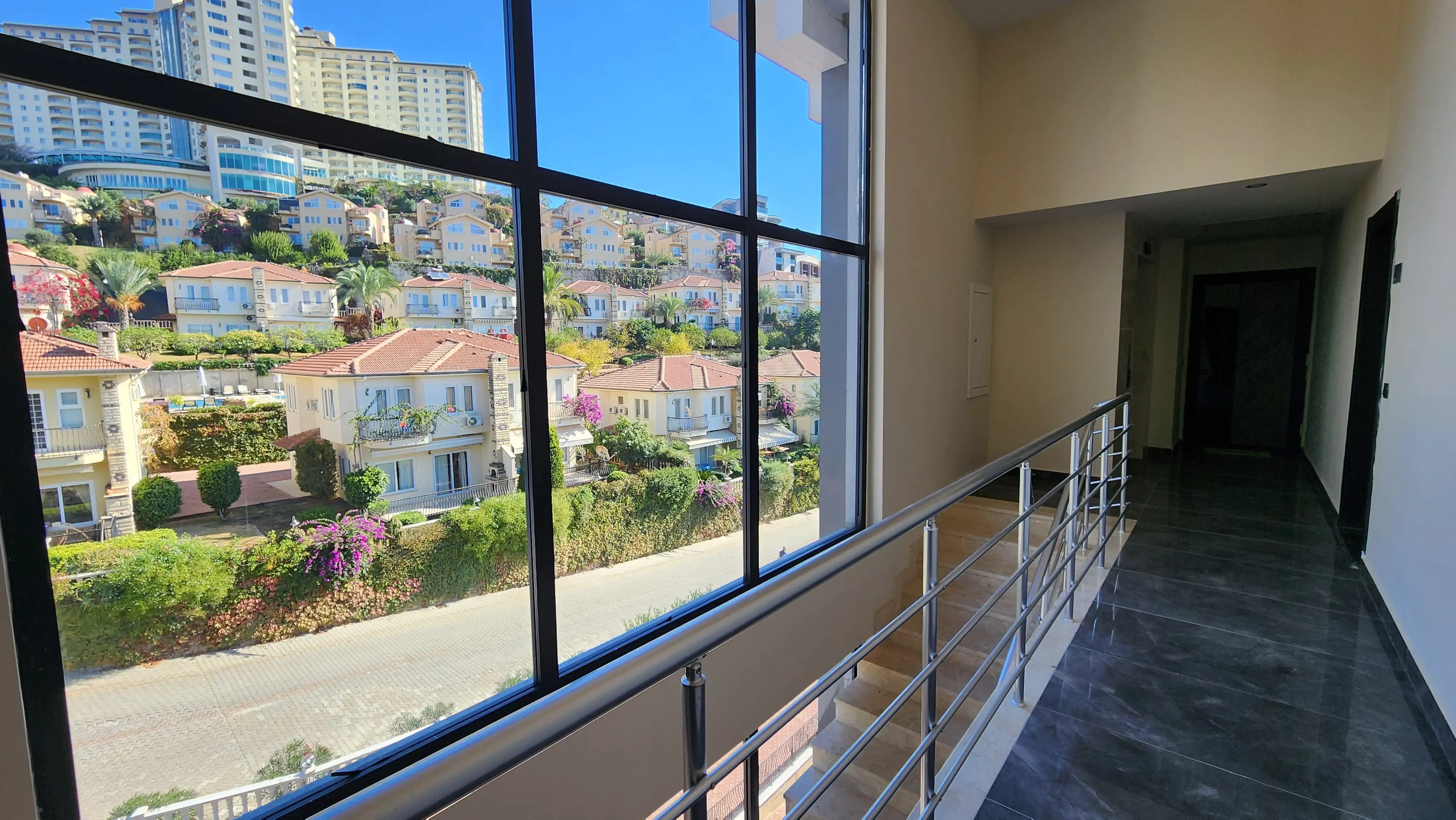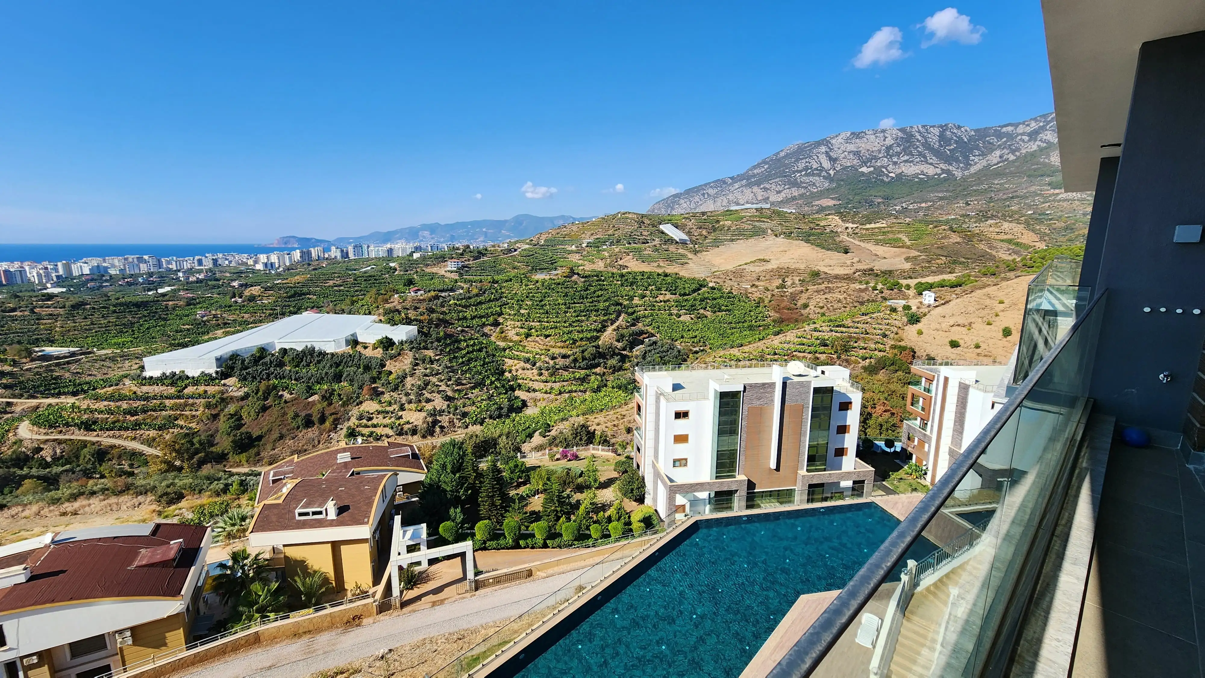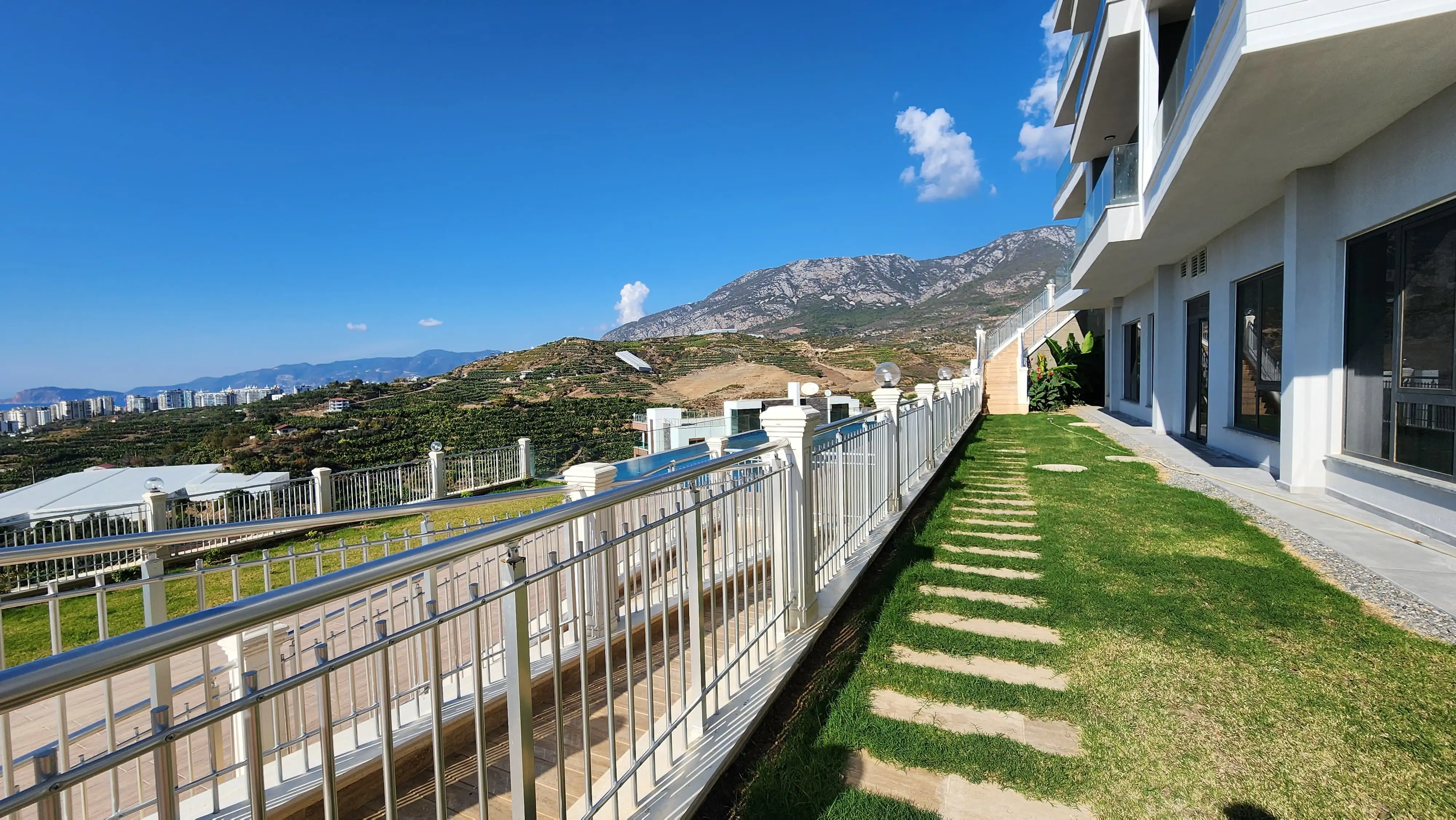 Внутри: Просторный полностью меблированный пентхаус 3+1 площадью 180 м² с панорамным видом на Средиземное море и побережье Алании. Вся мебель и техника высокого качества, что обеспечивает комфорт и стиль в интерьере.