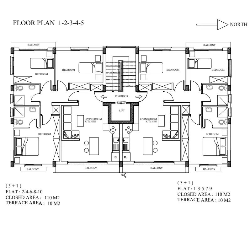 Внутри: В комплексе представлены просторные апартаменты планировки 3+1 общей площадью 120м2, обеспечивающие комфорт и удобство проживания в сердце этого уникального города. Квартиры предлагаются в полной чистовой отделке высокого качества с установленными встроенными шкафами в спальнях.