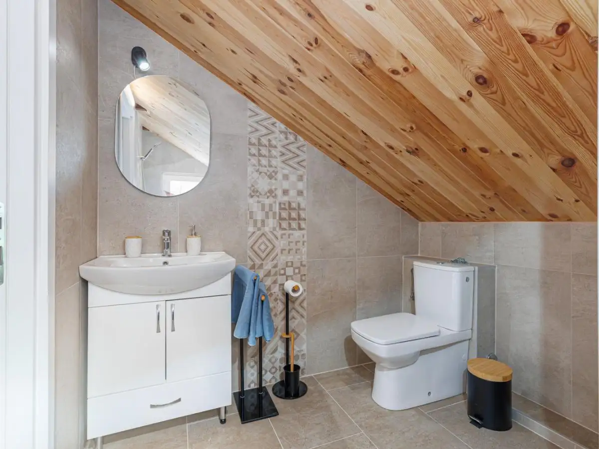 На втором этаже прихожая, санузел, две спальни, гостиная, кухня со столовой зоной, просторная терраса. Внутренняя лестница.