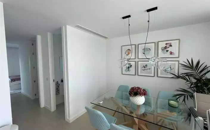 Благодаря своей аэротермической системе, это очень эффективно, отапливать или охлаждать дом теперь более экологично и экономично. Все окна защищены. На участке площадью 322 кв.м и с площадью 117 кв.м построен приватный подогреваемый бассейн, в котором можно плавать в любое время года. На первом этаже есть гостиная-столовая с американской кухней, гостевой туалет и спальня с ванной комнатой. На первом этаже есть две светлые спальни с собственной террасой, ванная комната, а также доступ к промежуточной террасе и солярию с видом на море. Во всех ванных комнатах есть теплый пол. В доме также есть частная парковка с автоматическими воротами и кладовая. С помощью интегрированной системы Smart Home вы можете контролировать свой дом. [IW]