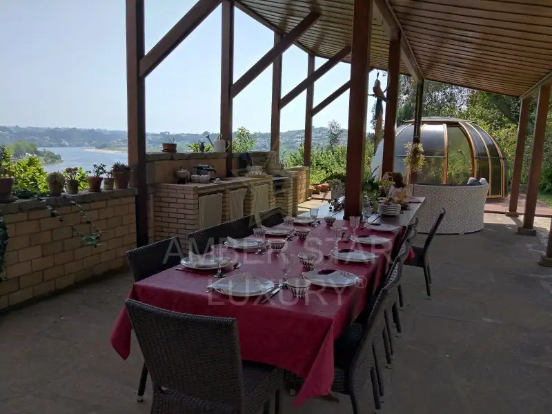 Расположенный на участке площадью 12 300 м², этот участок имеет 556 м² общей строительной площади, подземное пространство 500 м² и гарантирует абсолютную приватность, защищённый высокими стенами и преимущество от 140 метров прямого выхода на реку Дору.