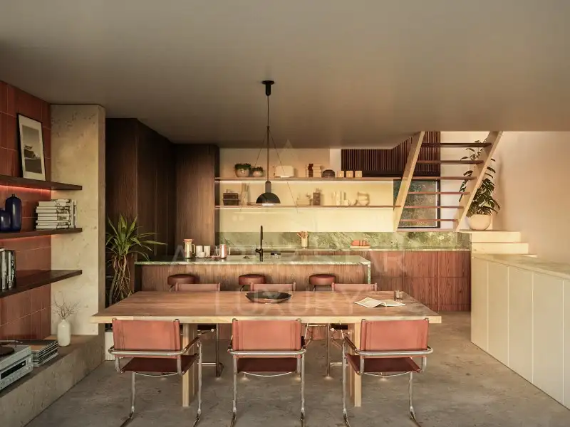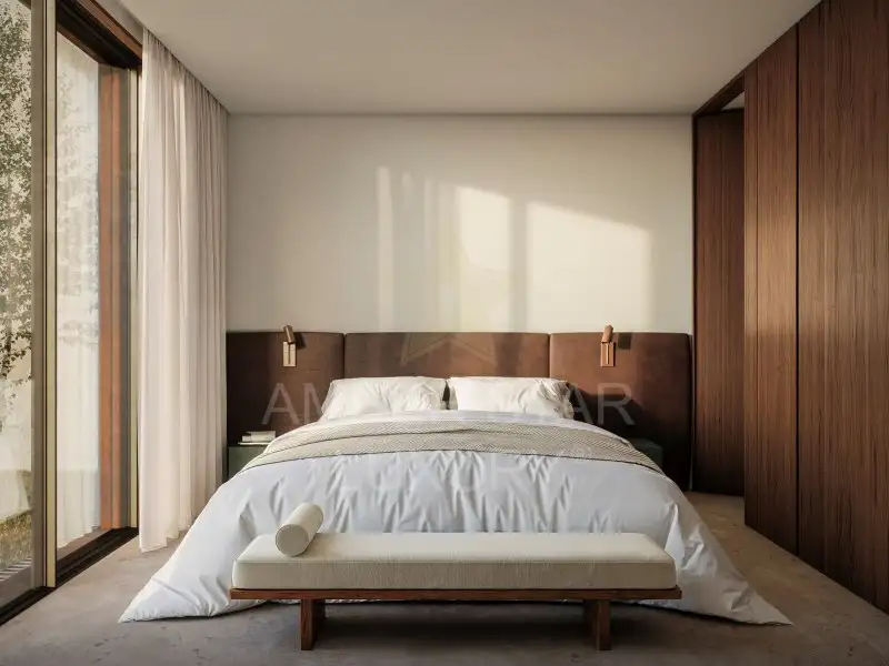 Внутренний дизайн выполнен с использованием благородных материалов, таких как экзотический орех, микроцемент и зеленый кварц, что гарантирует премиальное позиционирование. Это проект, направленный на повышение стоимости недвижимости и получение дохода в районе, где предложение ограничено, а спрос остается высоким.