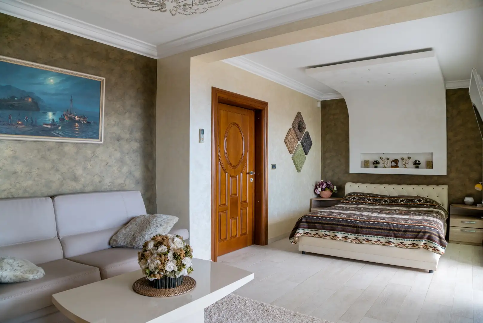 Локация: поселок Ивановичи – это ближний пригород Будвы, располагается на возвышенности, в зоне смешения морского и горного воздуха. Спокойное даже в туристический сезон место, одновременно позволяет быстро добраться до пляжа (4 минуты на авто / 25 минут пешком) и туристической столицы Черногории — Будвы (8 минут на авто / 45 минут пешком).