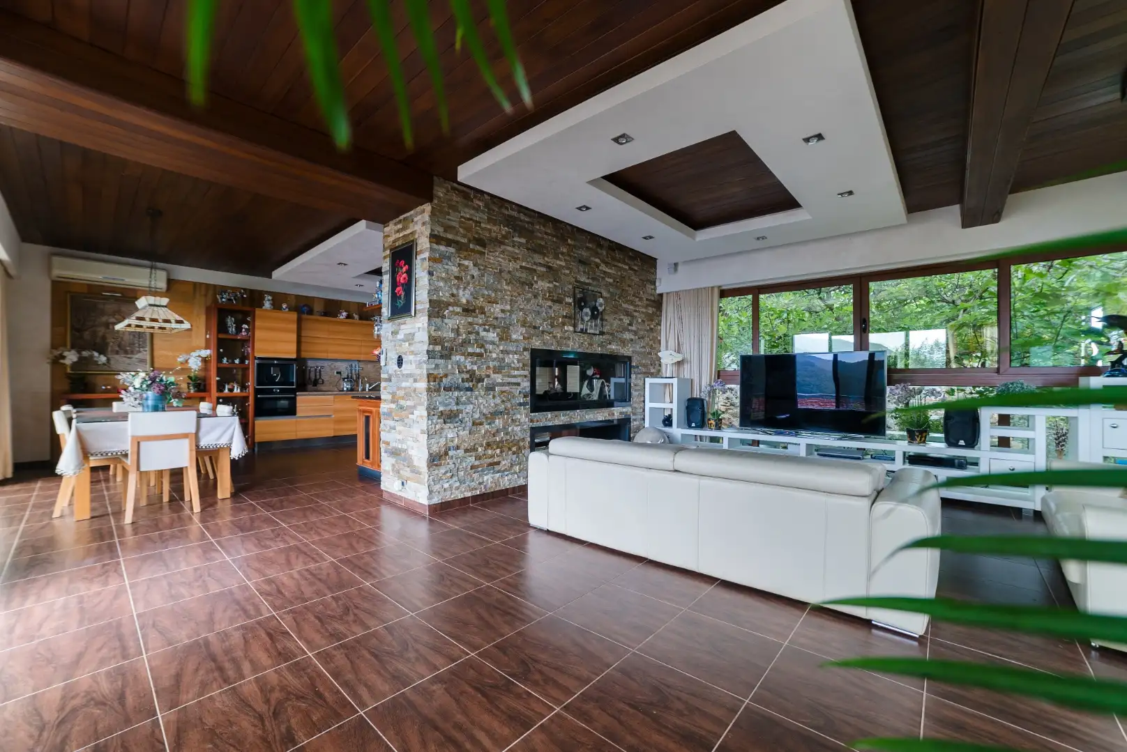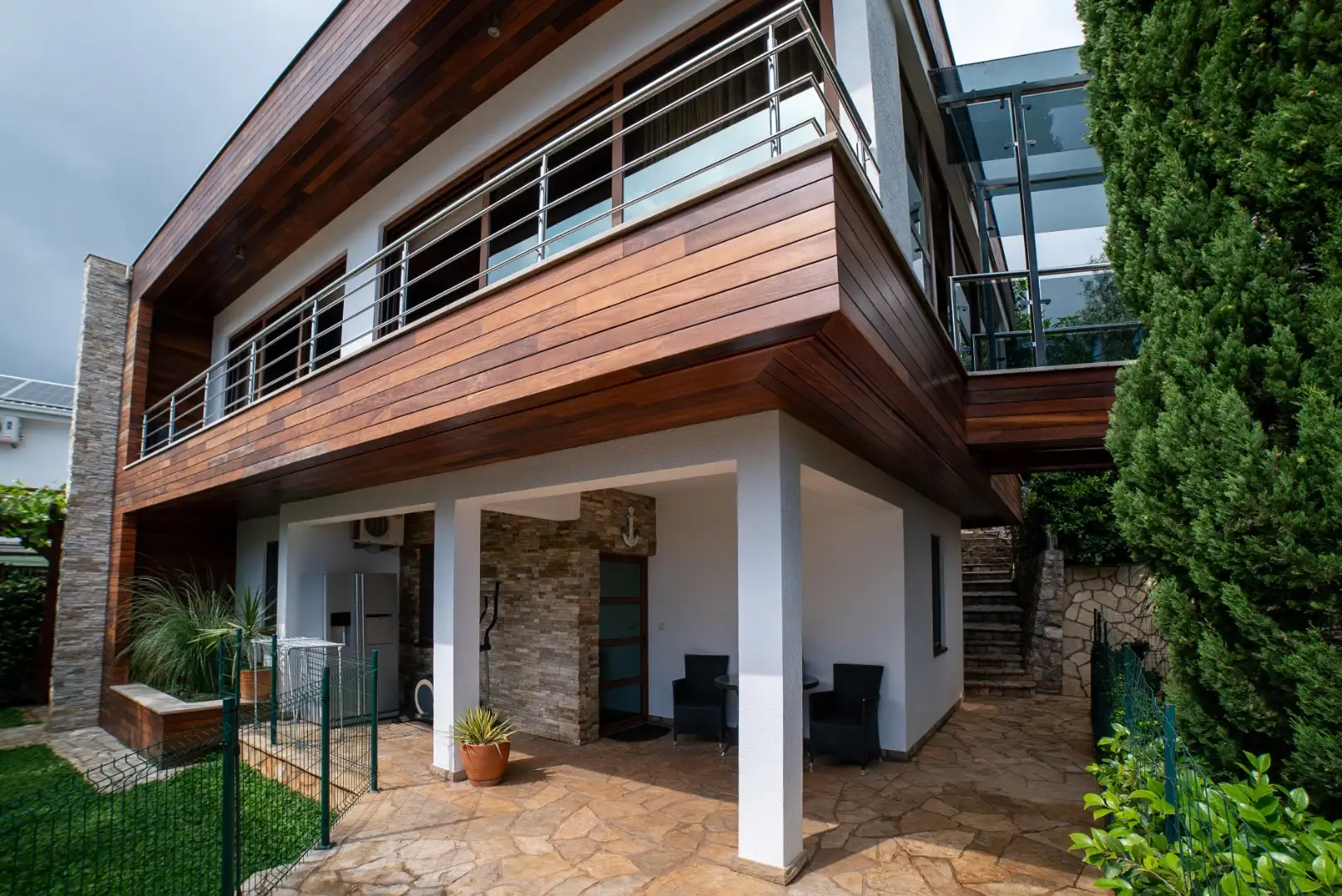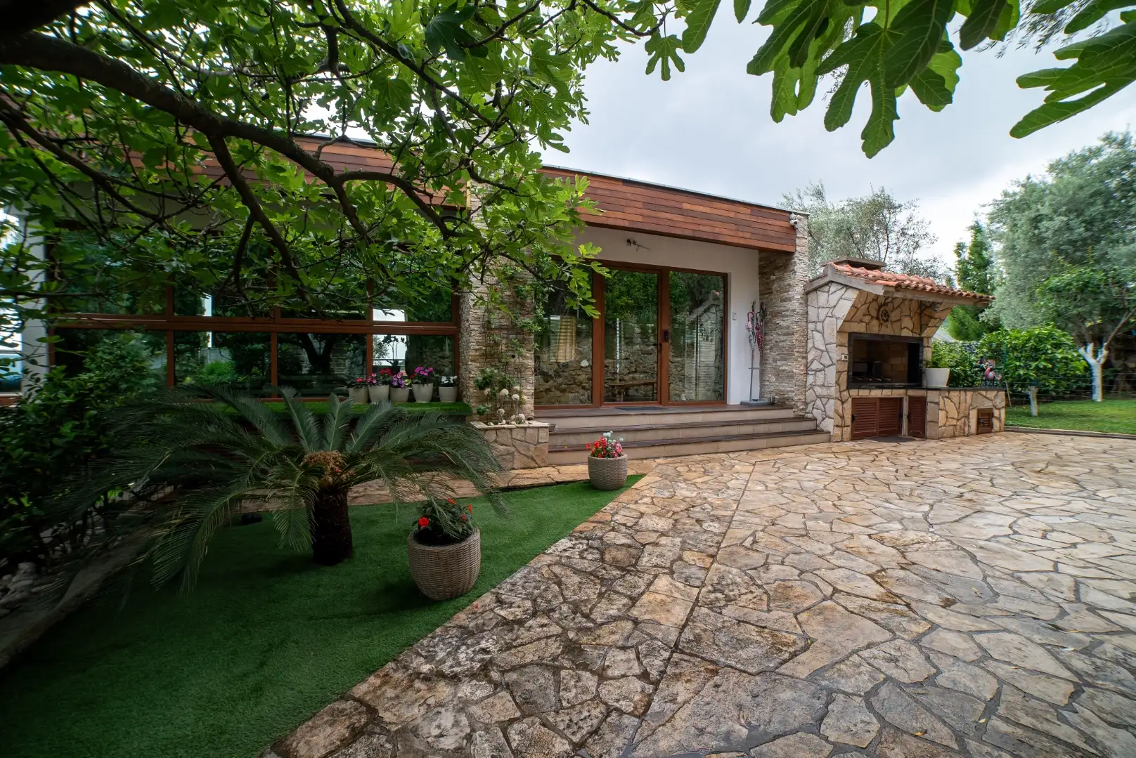 Основной дом был построен в 2007 году и полностью отремонтирован в 2012. Фасады отделаны натуральным камнем и деревом дорогостоящих пород.