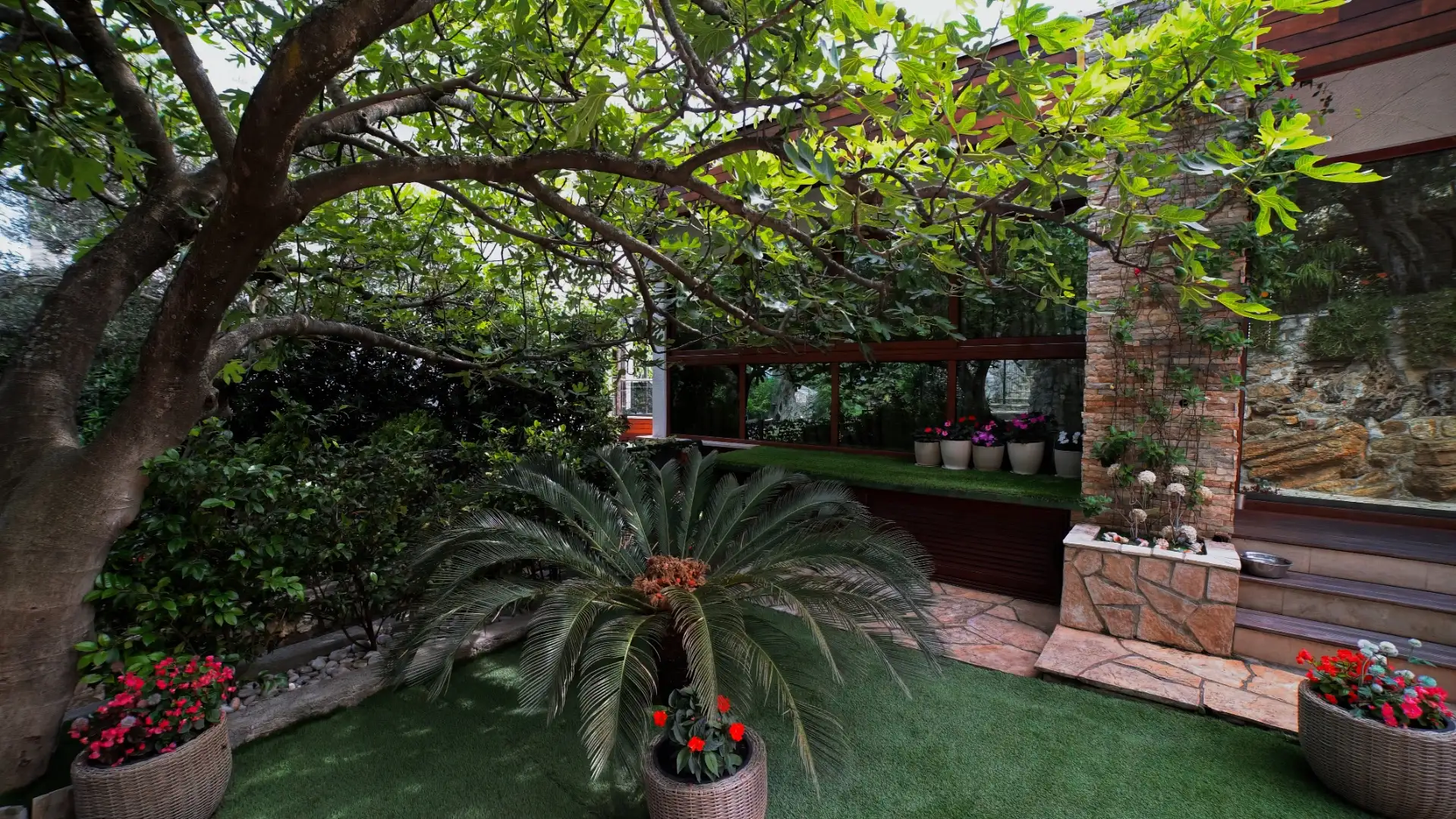 Территория комплекса представляет собой ухоженный сад: 12 старых олив, возрастом от 300 до 500 лет; кипарисы, пальмы, камелия, жасмин, яблони, мандариновые и апельсиновые деревья; лимоны, инжир, персики, виноград, хурма, фортунелла, слива, черешня; множество цветов и вечно-зеленая стена.