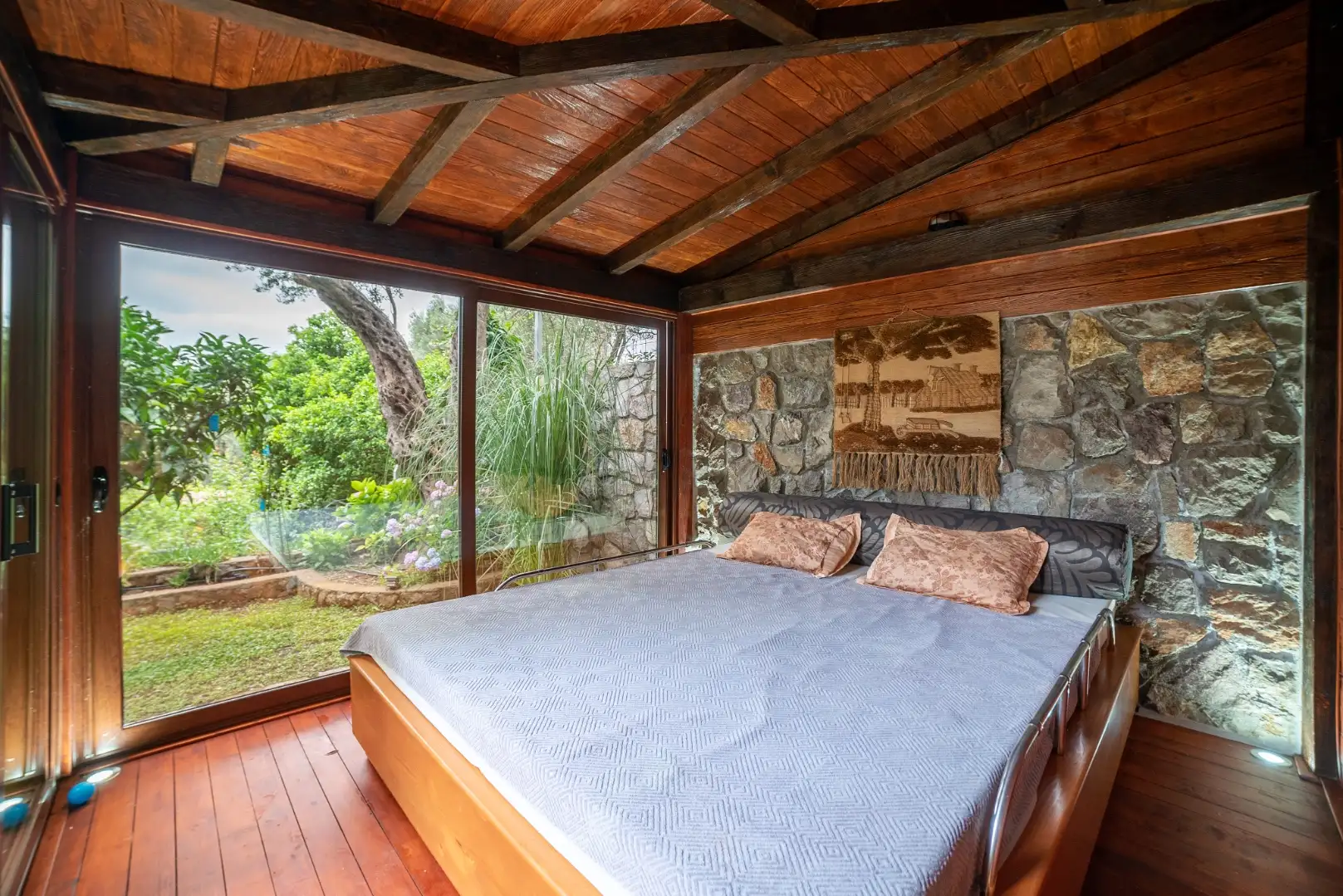 Гостевой дом располагается ярусом ниже дома для отдыха. Он состоит из небольшой гостиной с зоной кухни, спальни и ванной комнаты. Может использоваться как дом для персонала.