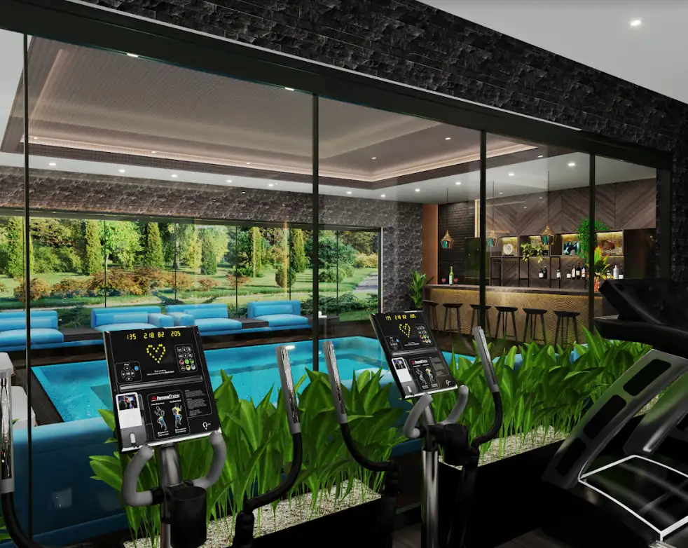 Что в комплексе: На территории 5800 м2 расположен 14 этажный жилой блок, летний бассейн, аквапарк, зона барбекю, беседки для отдыха, сад, домик для кошек, открытая парковка, парковка для велосипедов, детская игровая площадка, площадка для тенниса и баскетбола, комната для переговоров, кинотеатр, караоке, игровая комната, комната для встреч, паровая комната, сауна, комната для массажа, витамин бар, крытый бассейн, комната для отдыха, фитнес центр.