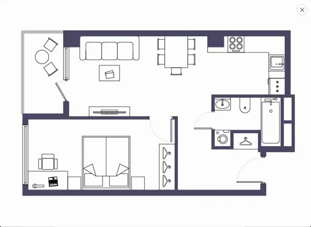 Квартира с 1 спальней площадью 50,4 м.кв. в черновой отделке на 20-ом этаже в современной высотке с рассрочкой оплаты до апреля 2028.
