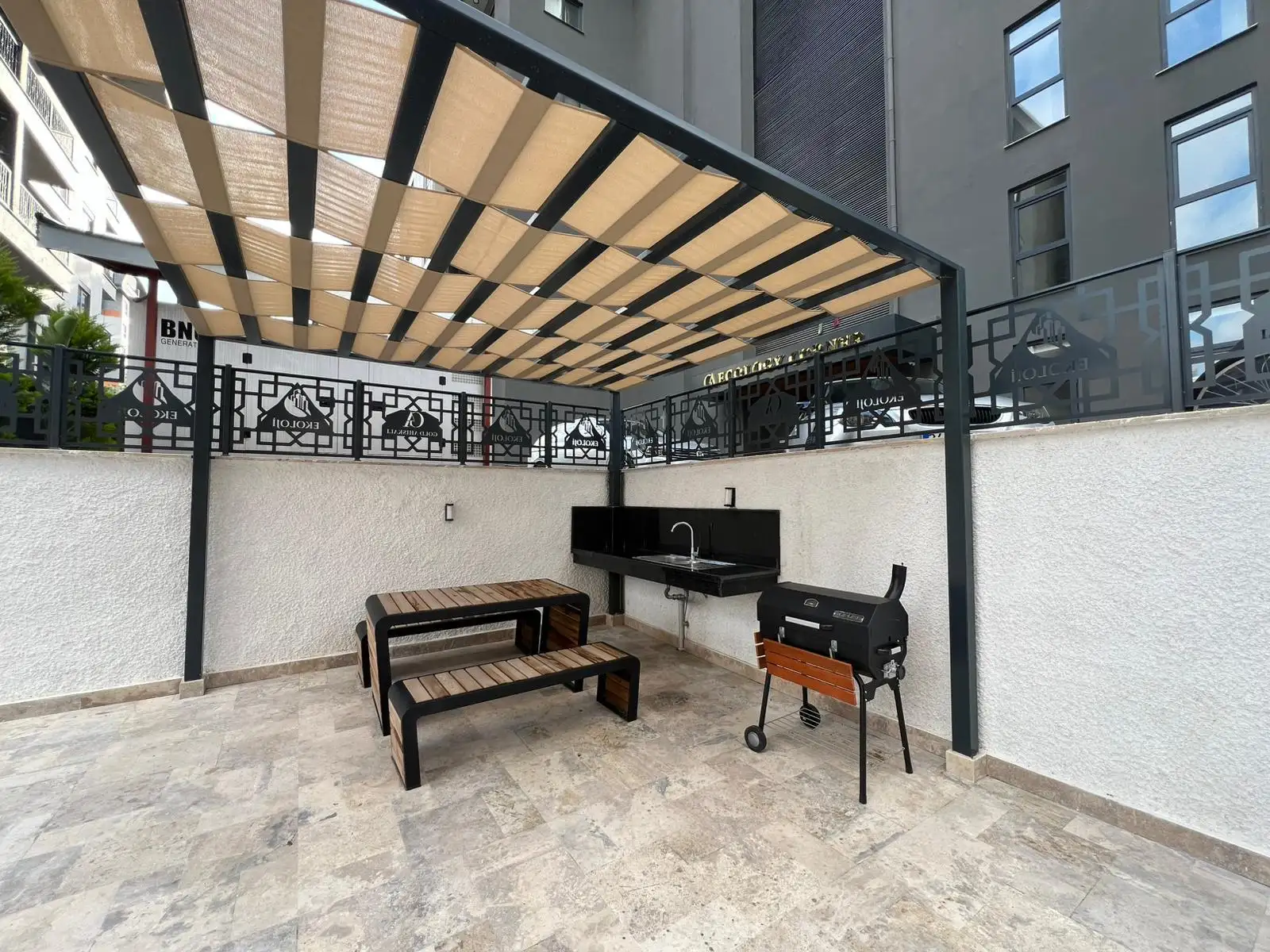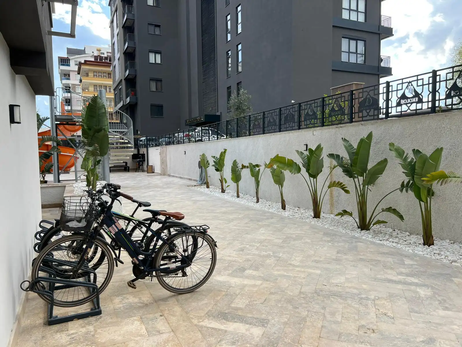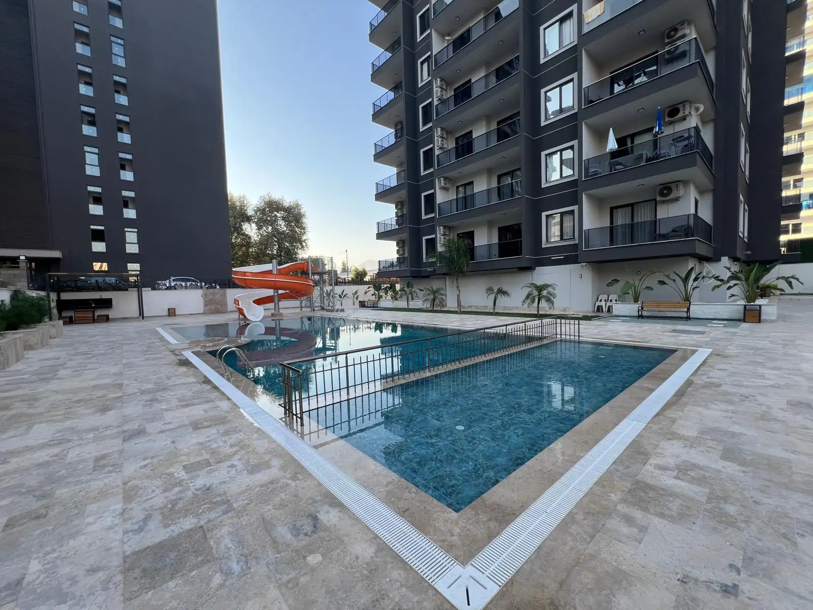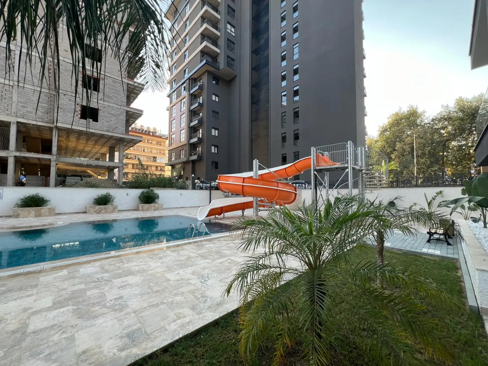 Жилой комплекс предлагает полноценную инфраструктуру для отдыха и повседневной жизни. На территории есть бассейн с водной горкой, зона релакса с сауной, хамамом и паровой комнатой, фитнес-зал, зелёные зоны отдыха с камелией, лифт, генератор и парковка для автомобилей. Закрытая и ухоженная территория создаёт ощущение безопасности и уюта.