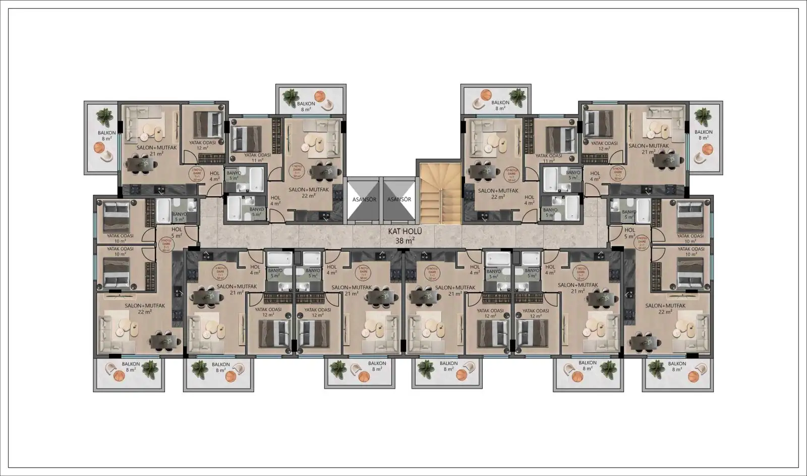 Кому может быть интересным: Комплекс будет находиться в экологически чистой местности развитого района, рядом с удобной транспортной развязкой и непосредственной близостью к морю. Это делает его привлекательным для тех, кто хочет инвестировать деньги в жилье на берегу Средиземного моря, в комфортабельном месте с развитой инфраструктурой и оснащенным современными решениями.;