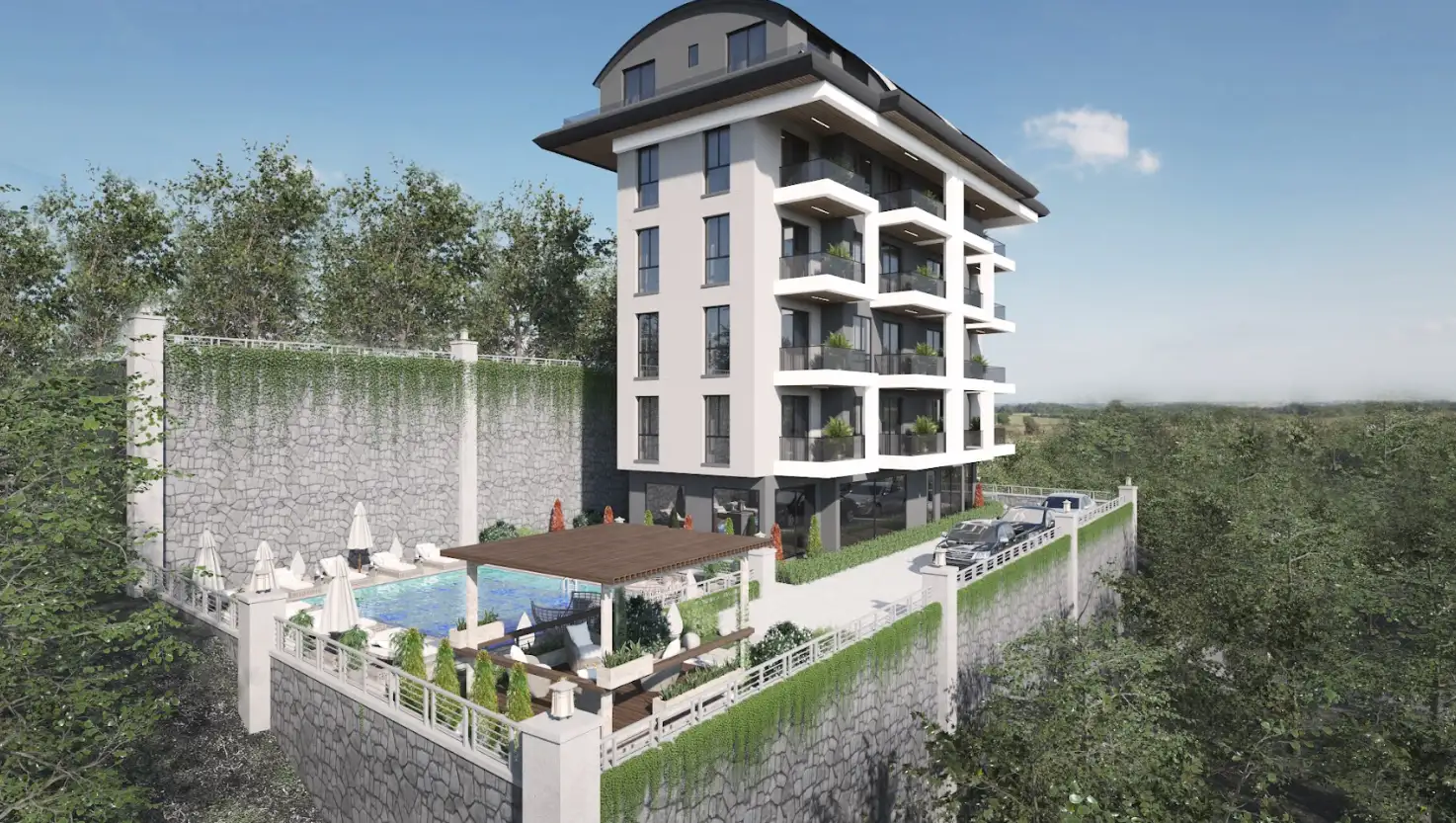 Кому может быть интересным: Новые апартаменты в уютном комплексе в районе Конаклы, близко к центру Алании, на стадии строительства, для любителей тихого и спокойного отдыха.