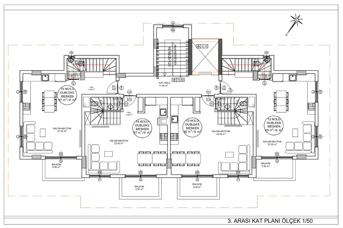 Пентхаус 2+1 площадью 85-87 м2.