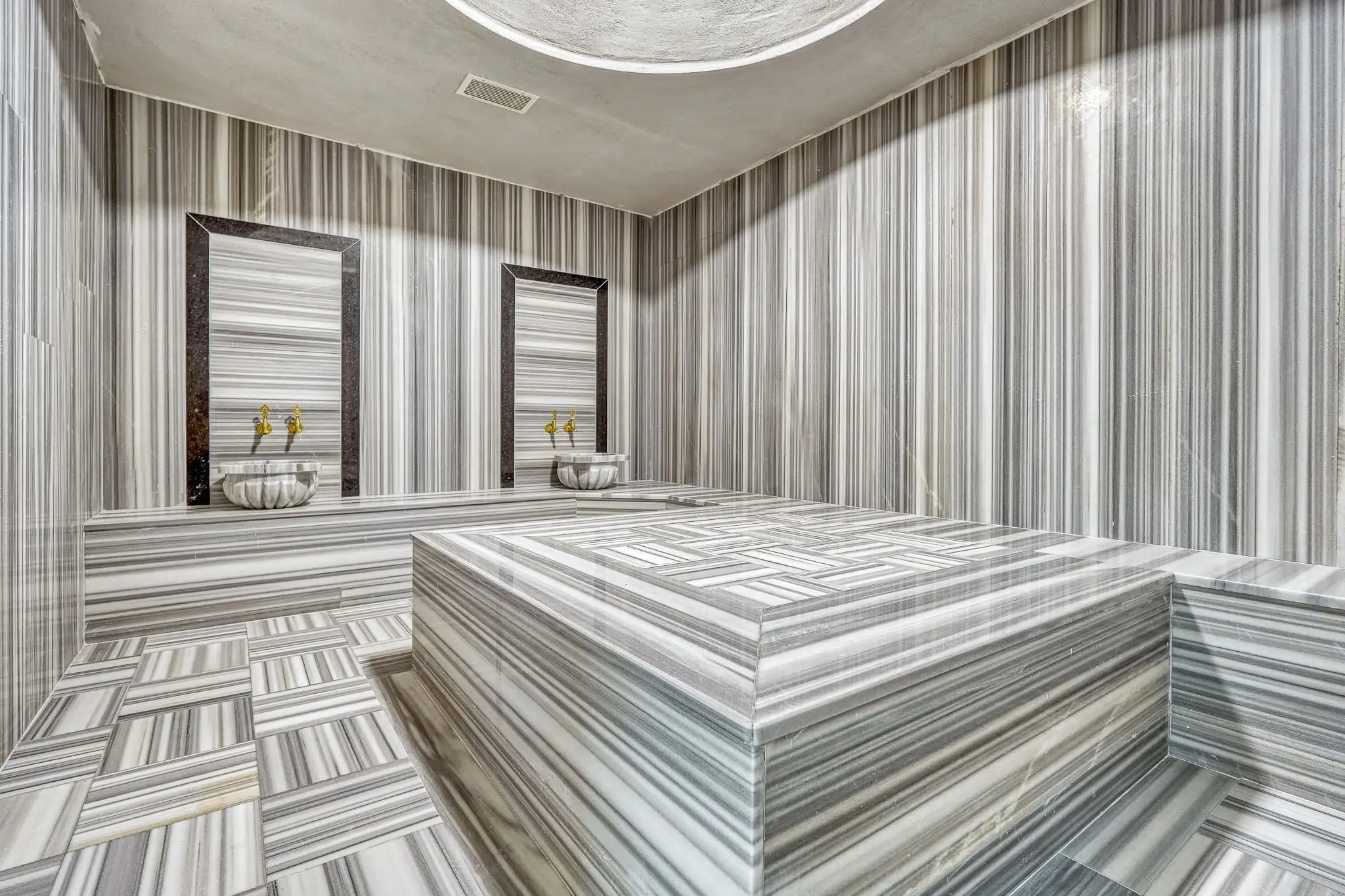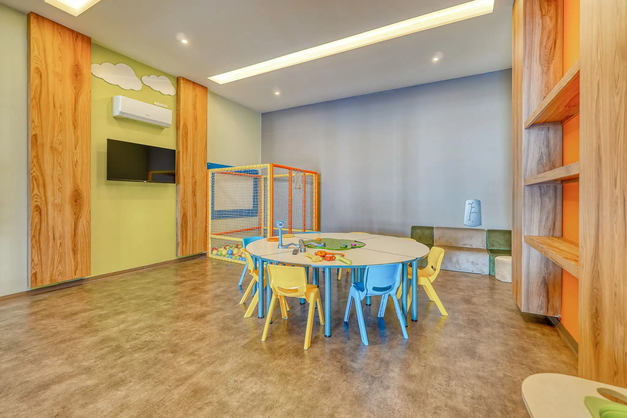 Что в комплексе: На территории расположено 3 пятиэтажных жилых блока, летний бассейн с водными горками, бар у бассейна, баскетбольная площадка, кафе, детская площадка, крытый бассейн, хамам, финская сауна, спортзал, электрогенератор, крытая парковка. В комплексе будет установлено систему видеонаблюдения.
