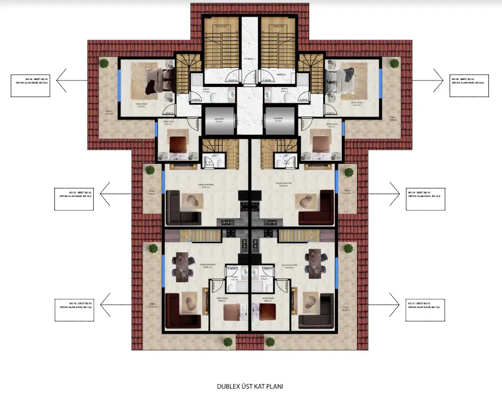 м2, либо дуплекс планировкой 1+1, 2+1, площадью 77 и 94 м2.