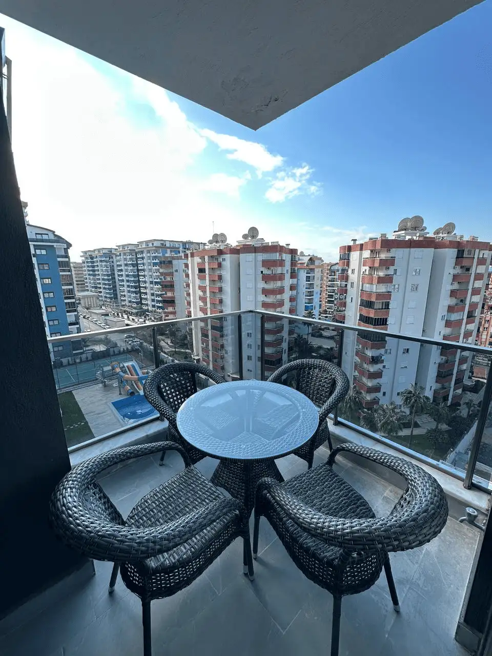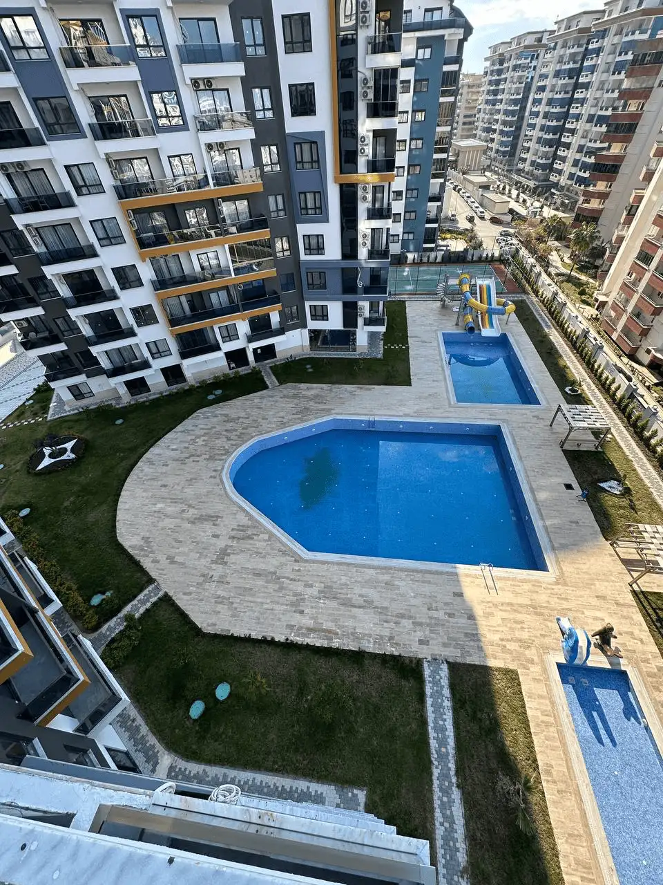 Что в комплексе: Комплекс уровня 5*, включает открытый и крытый бассейны, сауну, турецкую баню, фитнес-центр, бар у бассейна, детскую игровую площадку, мультикорт для спорта, прогулочные дорожки, ухоженные зелёные зоны, открытую парковку, смотрителя территории