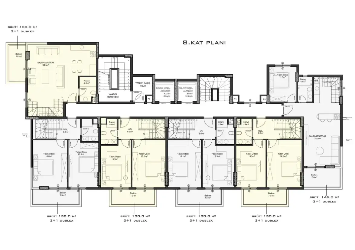 2+1 пентхаус площадь от 130 до 138 м2,
