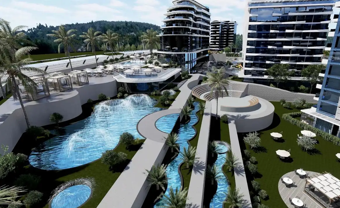 New Level Premium — современный жилой комплекс с полной инфраструктурой, расположенный в живописном курортном районе Авсаллар, Алания, напротив одного из лучших пляжей региона — Инджекум, с видами на море, горы и лес.