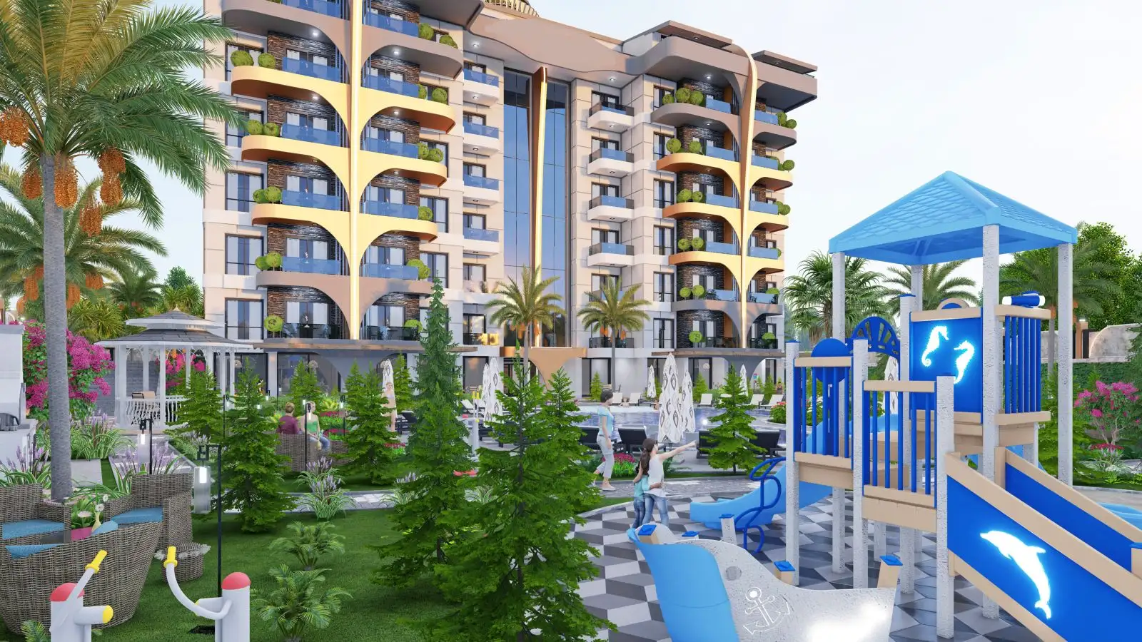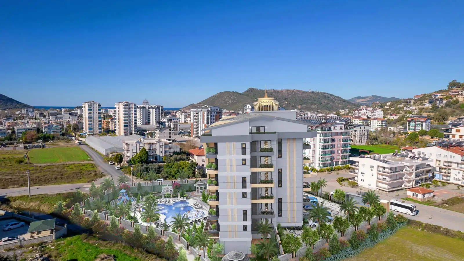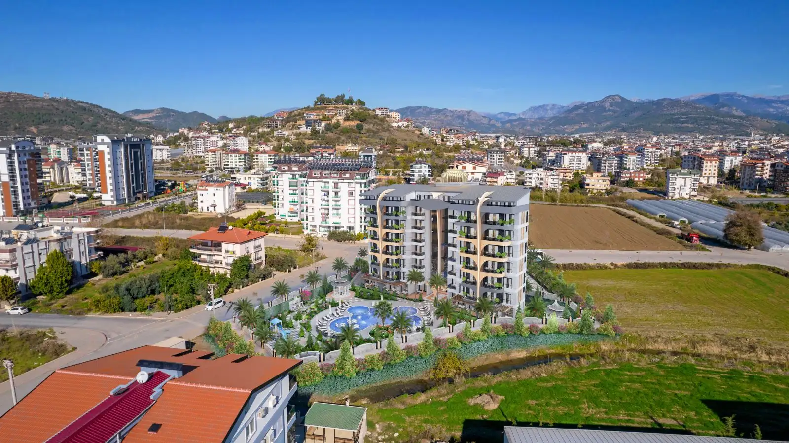 Что вы получаете: Новый жилой комплекс с богатой инфраструктурой в Газипаше.