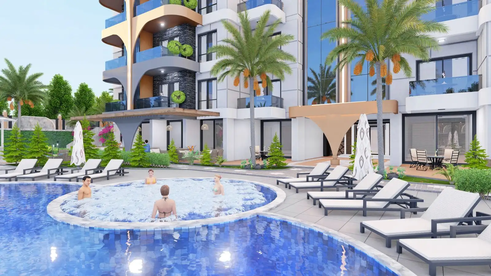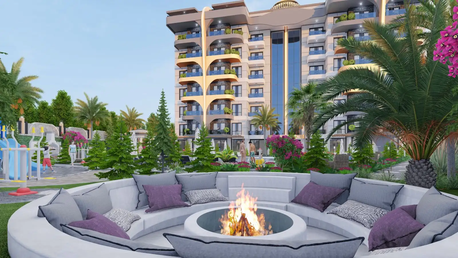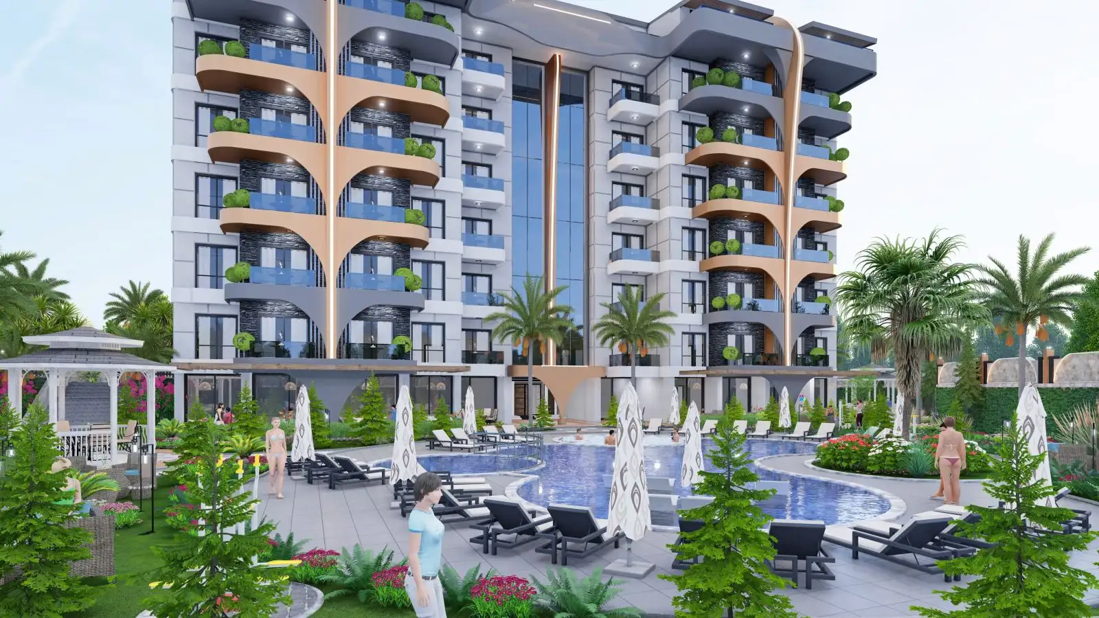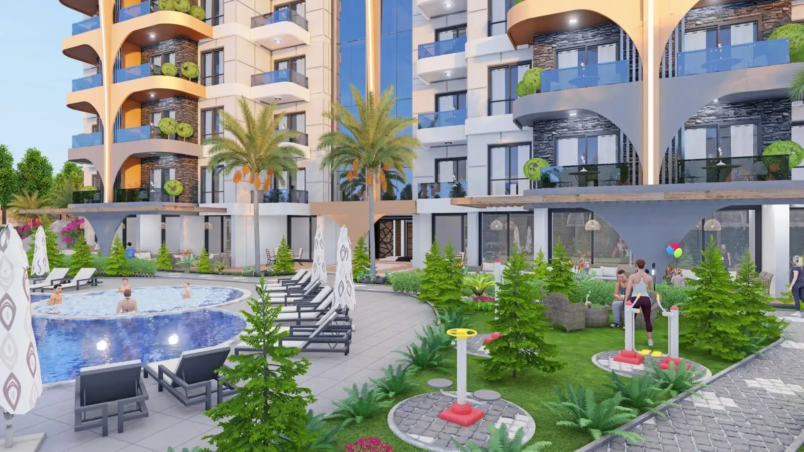 Что в комплексе: На закрытой территории с инфраструктурой построен один из самых красивых жилых проектов в Газипаше, спроектированных в современном архитектурном стиле. Комплекс будет отличаться обилием мест для отдыха и развитой внутренней инфраструктурой. К услугам гостей и жителей комплекса будут предоставлены: открытый бассейн, беседки для отдыха, тренажерный зал, сауна, хамам, детская игровая комната, уличная спортплощадка, кинотеатр, кафе, комната для игр, парковка и многое другое, что позволит весело и комфортом провести время на территории комплекса.