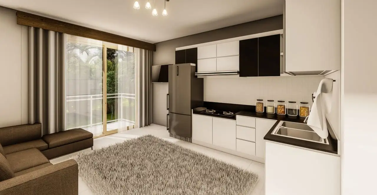 Внутри: Апартаменты предлагаются в стандартной чистовой отделке, с высококачественными окнами, дверями, кухонной мебелью и готовыми ванными комнатами; напольное покрытие – ламинат. В апартаментах проведен интернет.