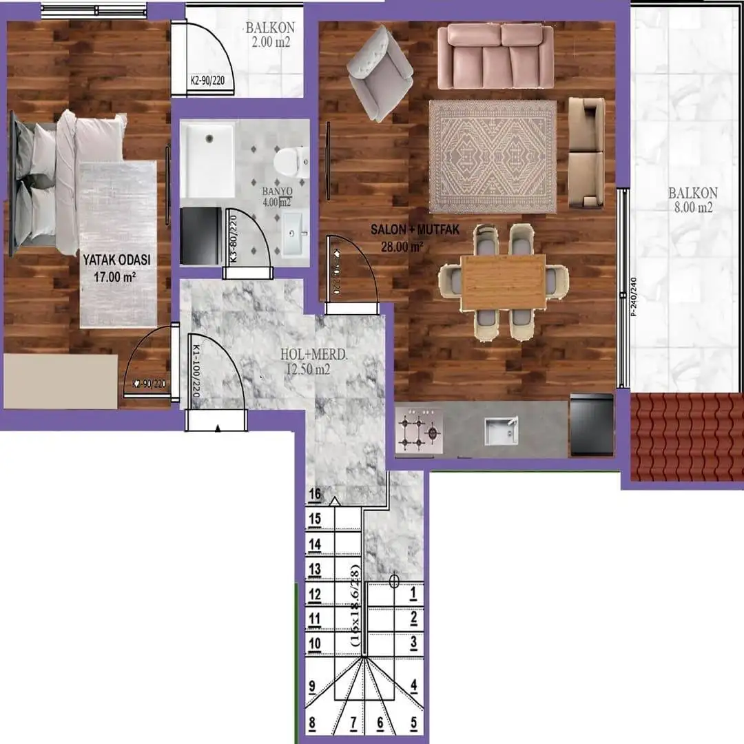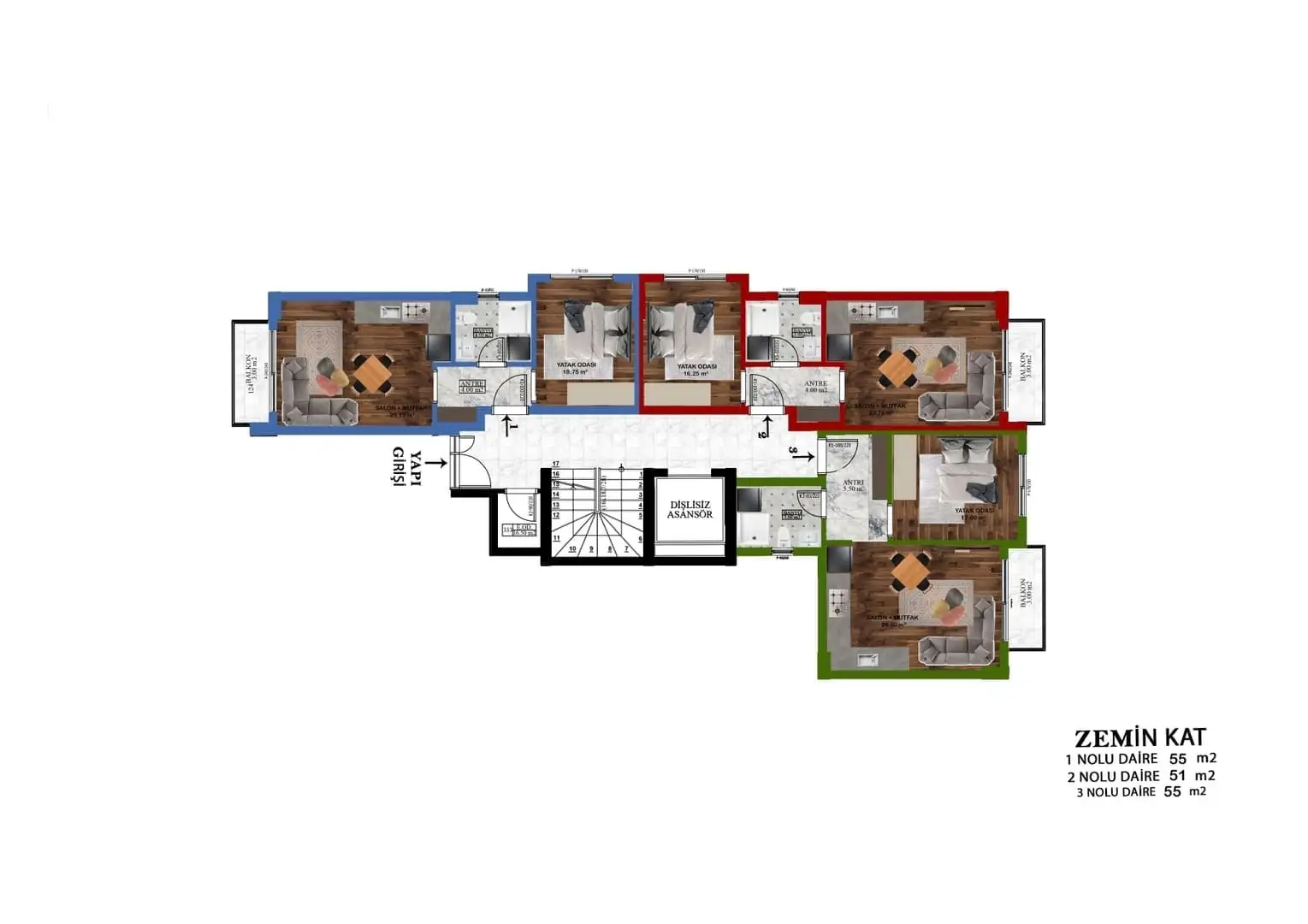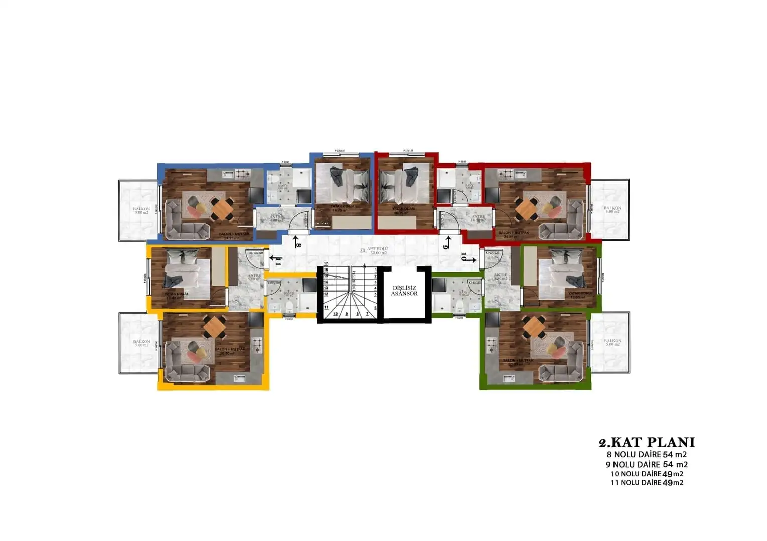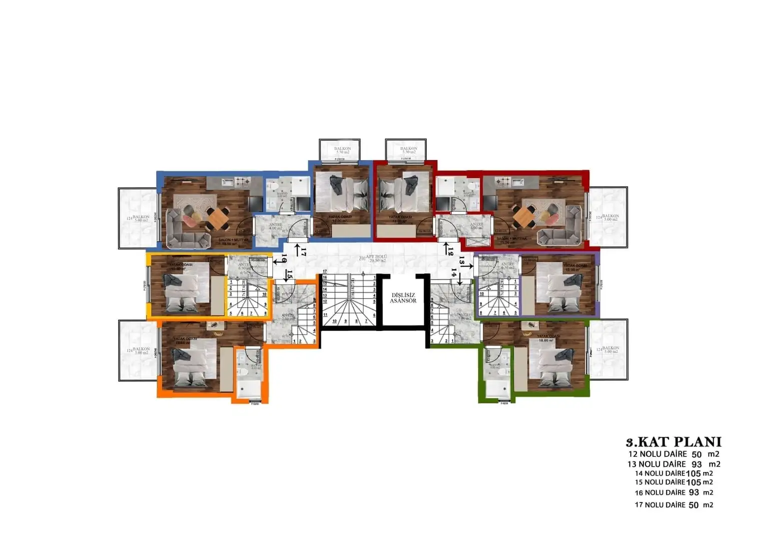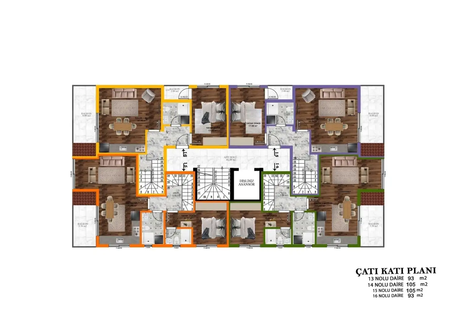 2+1 пентхаус площадью 93 м2 и 105 м2.