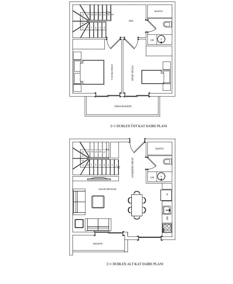 Внутри: Выбор ваших будущих апартаментов также впечатляет. Всего в комплексе расположилось 27 квартир: 1+1 площадью 61 м2, 2+1 площадью 92 м2 и 2+1 дуплексы площадью 105м2. Каждая квартира будет сдана в полной чистовой отделке, с использованием высококачественных материалов и стильного дизайна, чтобы вы могли наслаждаться новым жильем.