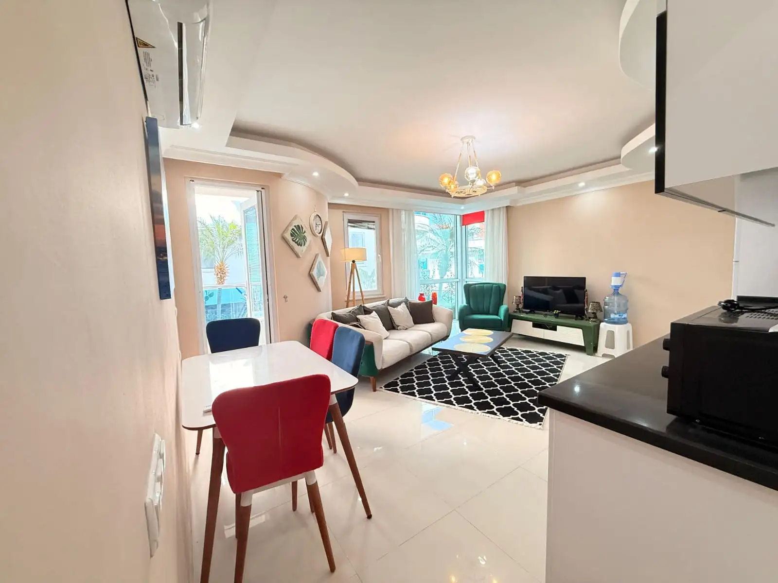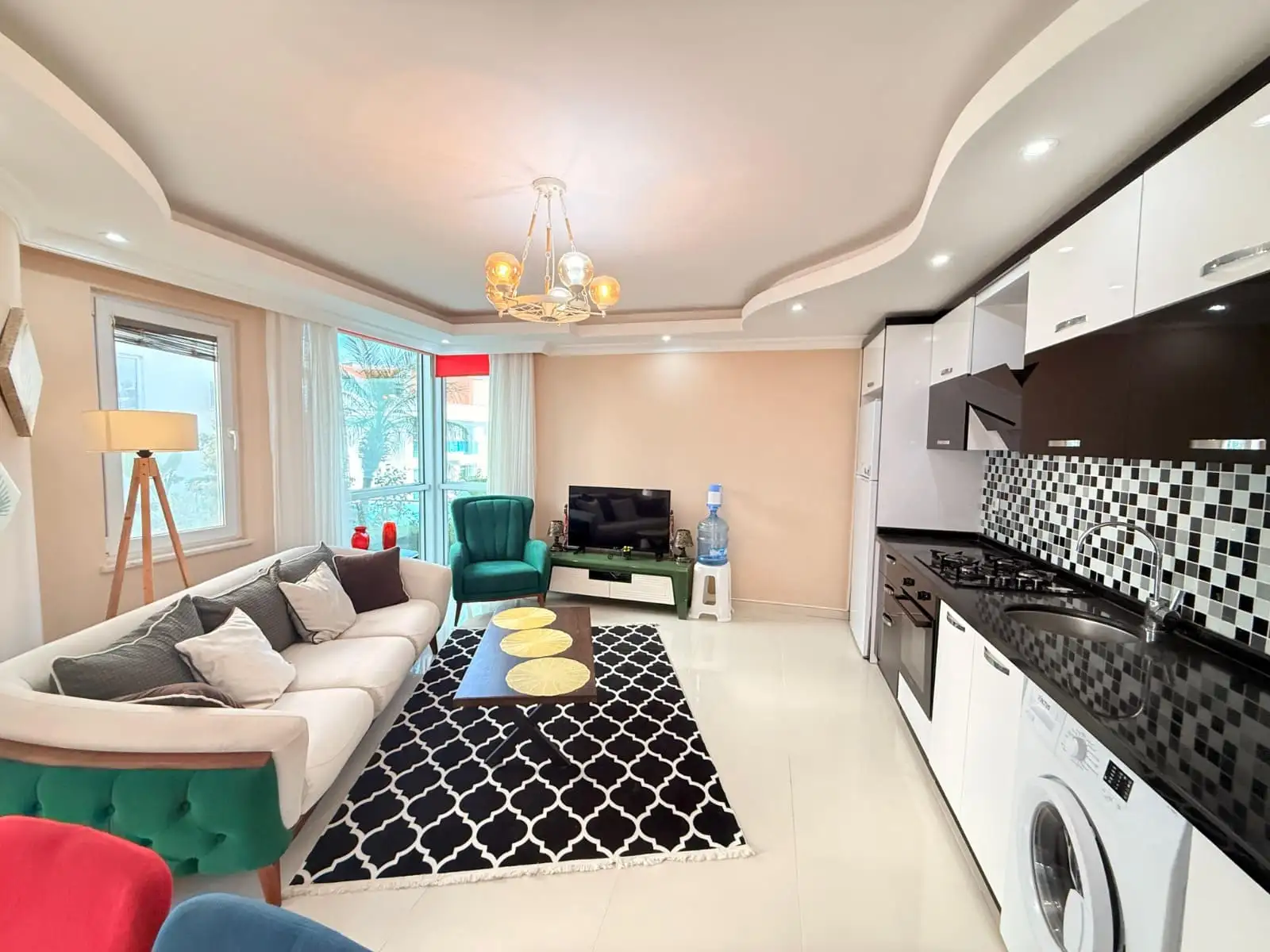Район\пляж: Объект находится в одном из самых популярных и престижных районов Аланьи — Клеопатра. Всего 400 метров до знаменитого песчаного пляжа, который считается одним из лучших на всём побережье. Район привлекателен круглогодично: здесь отлично развита инфраструктура, много зелени, спокойная атмосфера и при этом близость ко всем городским удобствам.