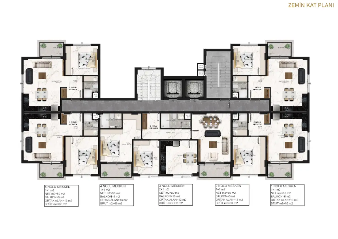 Что вы получаете: Новый жилой комплекс, который сочетает в себе роскошь и комфорт в самом желанном районе Демирташ.