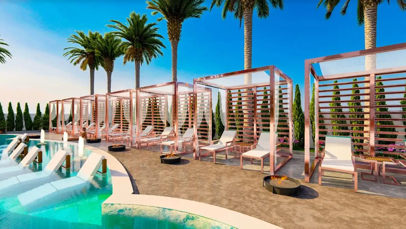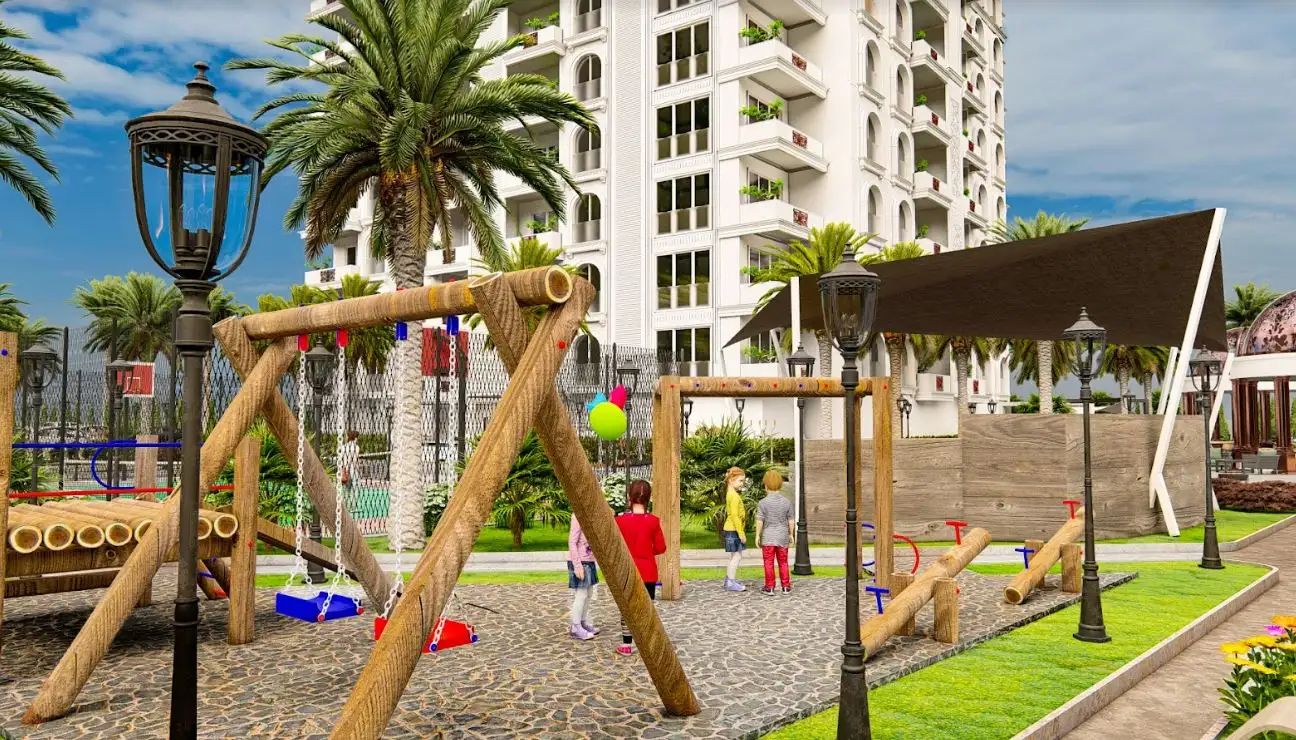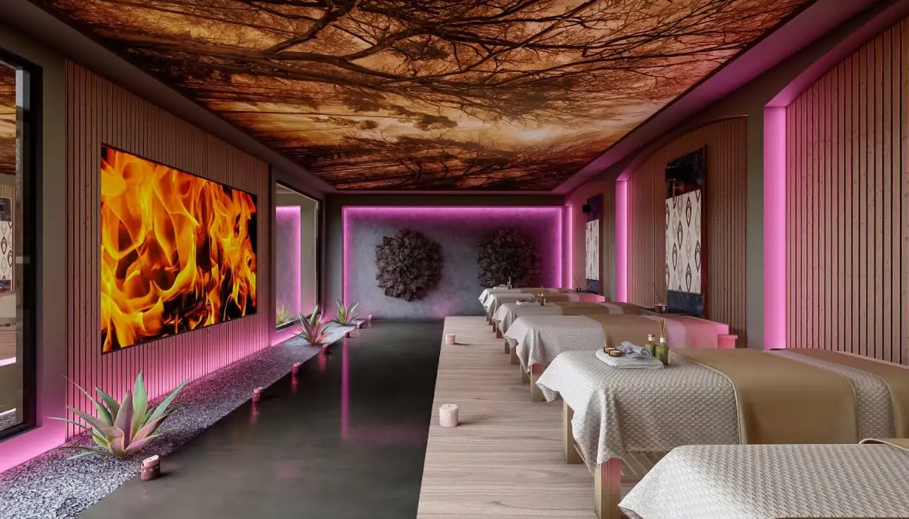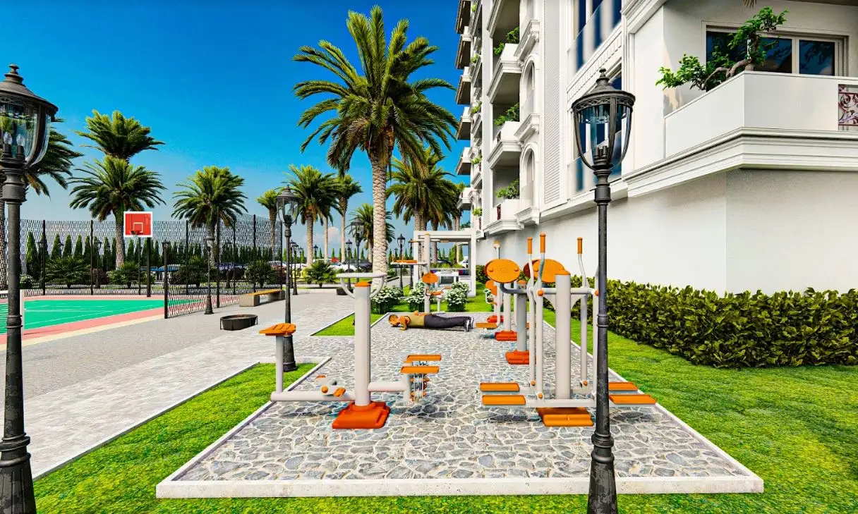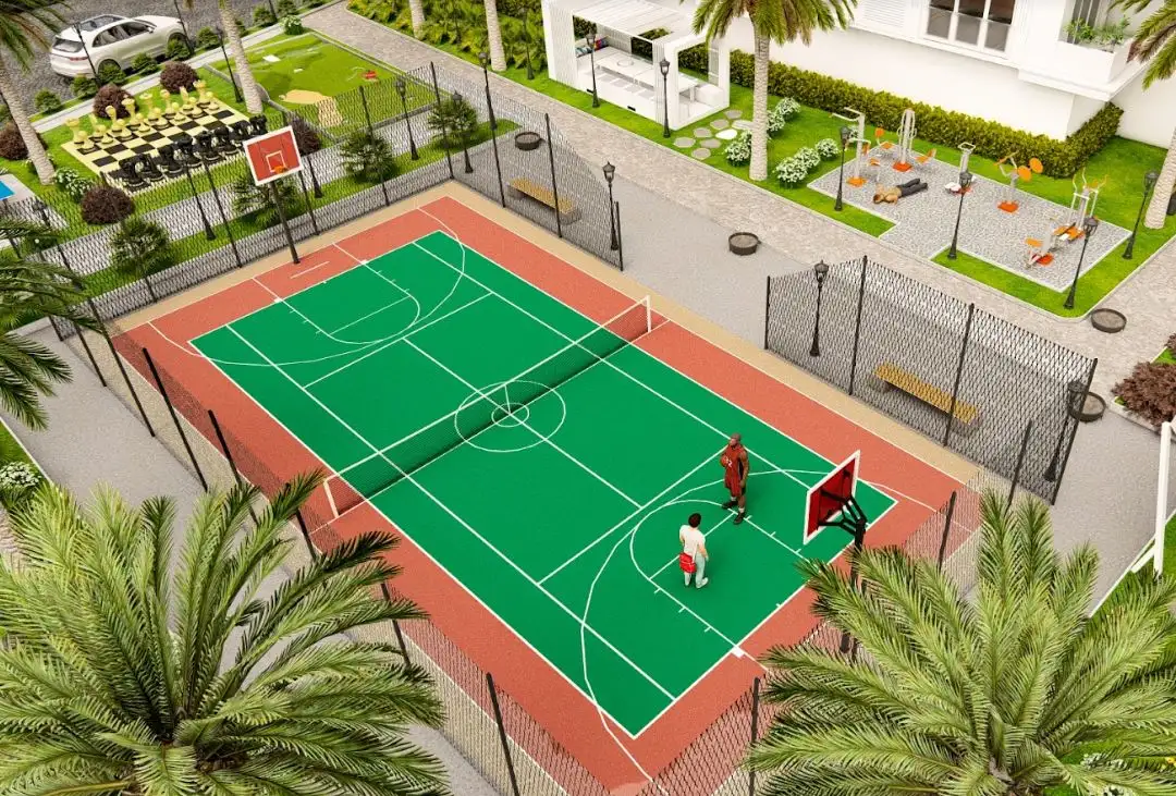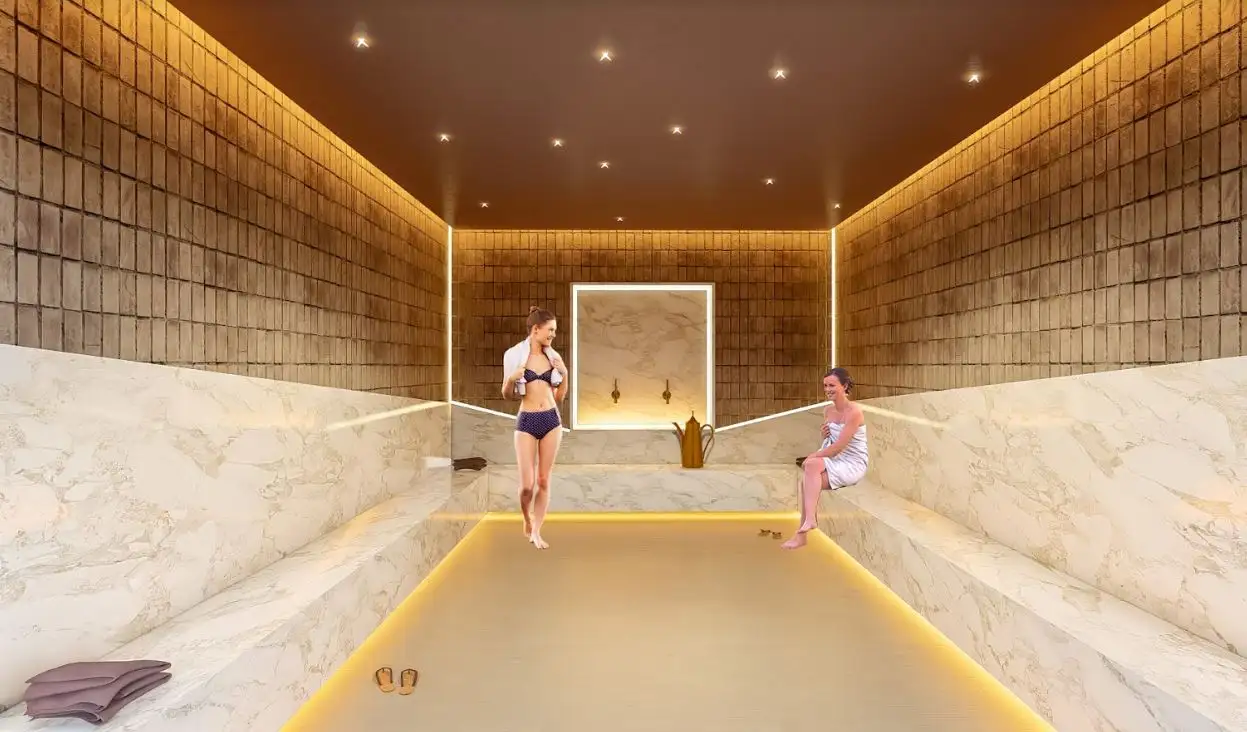 Это и различные зоны для занятия спортом как на открытом воздухе, так и внутри комплекса, лобби с зоной регистрации и записи, спортивный клуб, зона спа с массажем, сауной и релакс комнатой, кинотеатр, детские площадки и игровые комнаты, просторный сад с местами для отдыха, открытый бассейн с террасой, а также амфитеатр.
