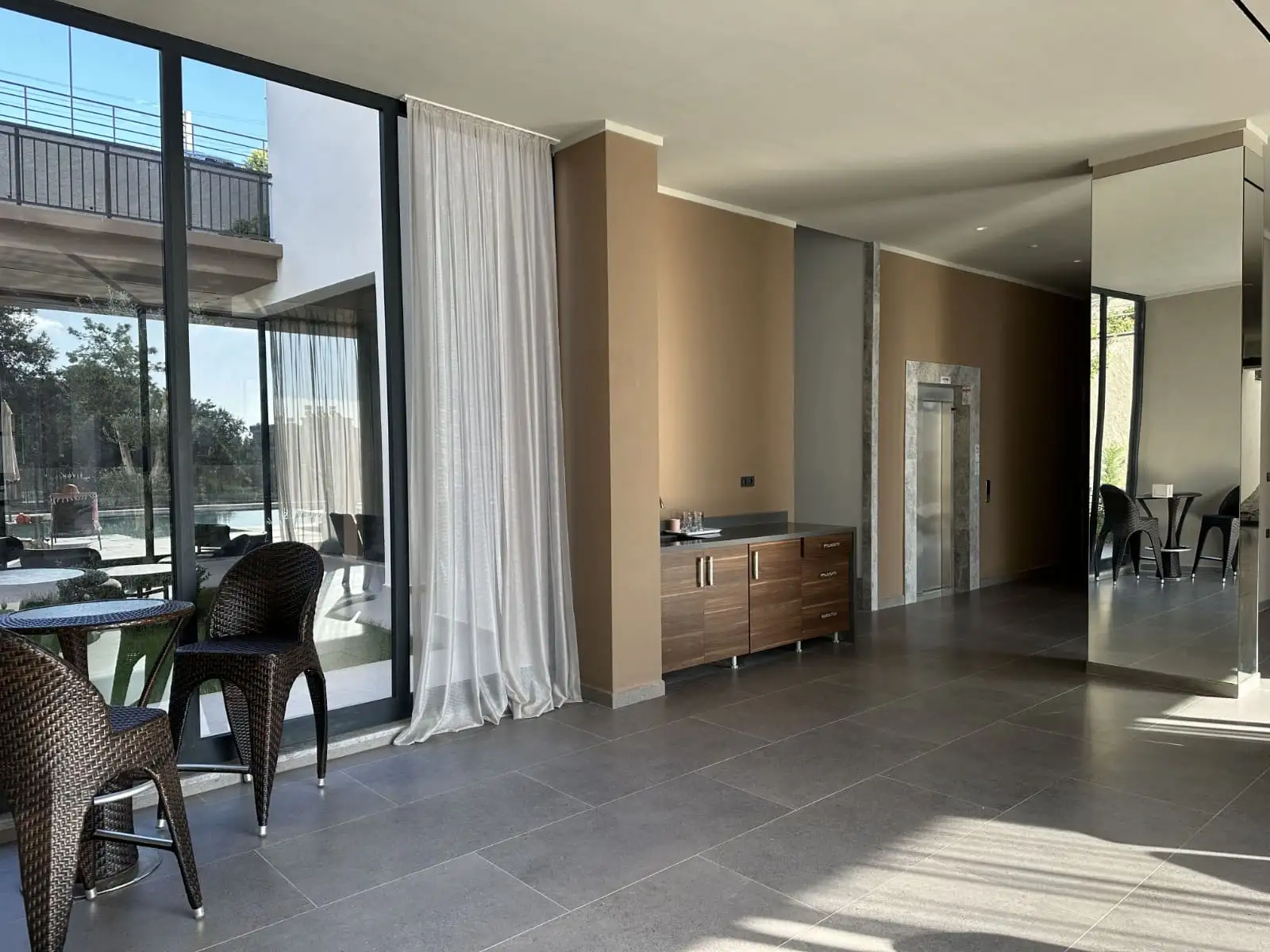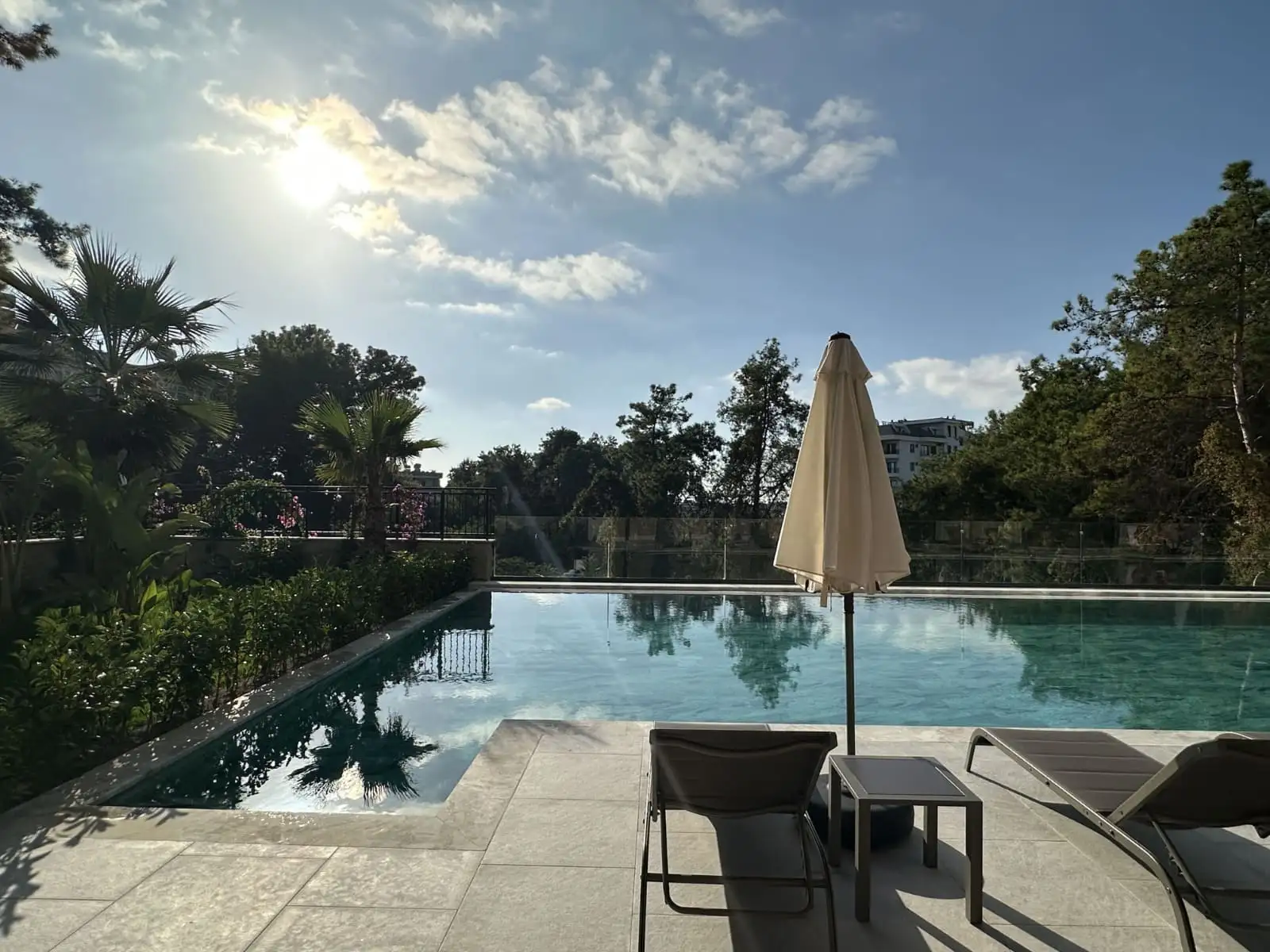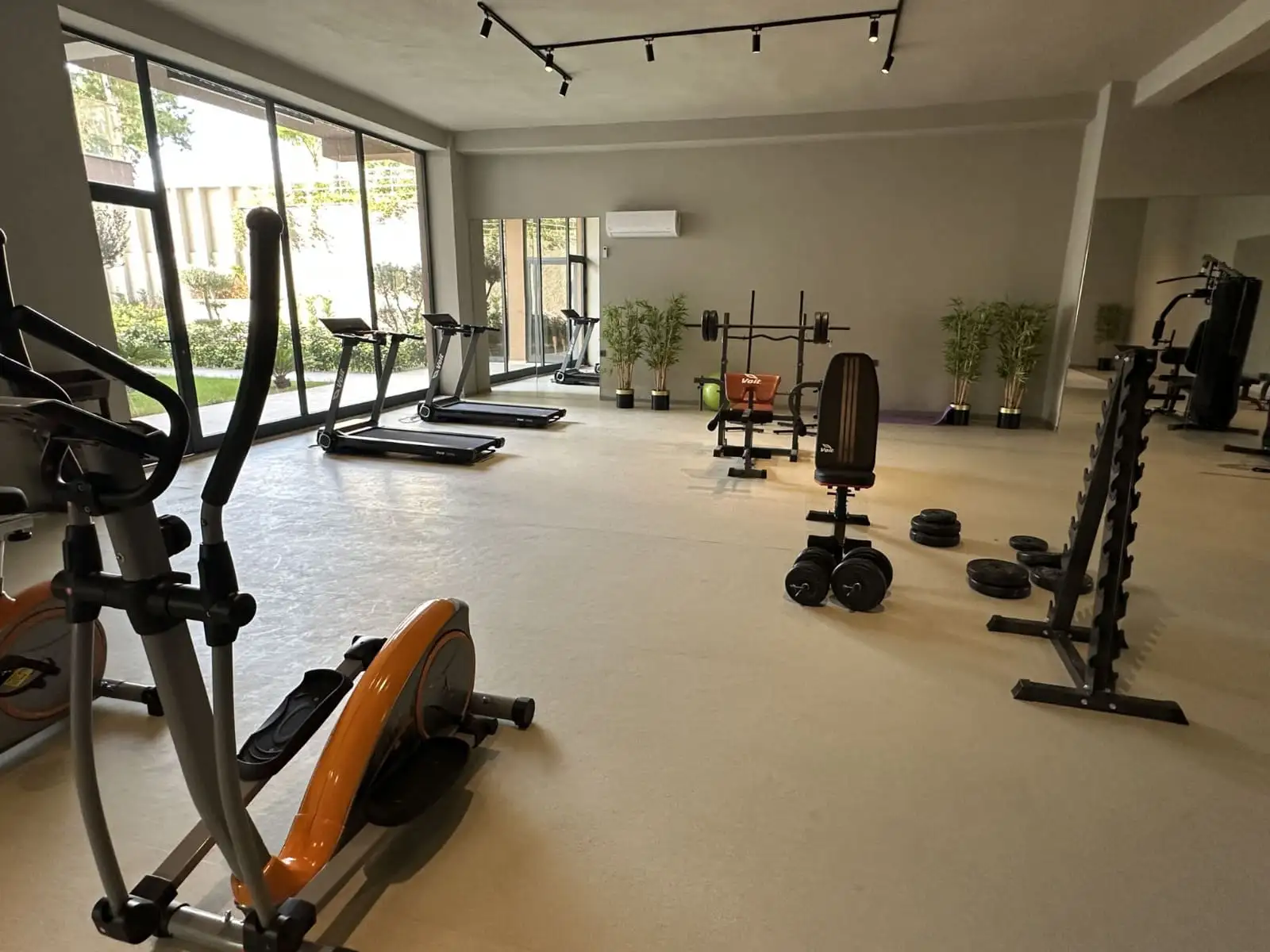 Что в комплексе: Комплекс состоит из одного блока с жилыми помещениями, спортивным залом, а также просторным лобби, где находятся места для отдыха и кафе. На территории комплекса есть бассейны для взрослых и детей, помимо этого, для жителей садовых дуплексов предусмотрен свой, отдельный бассейн.