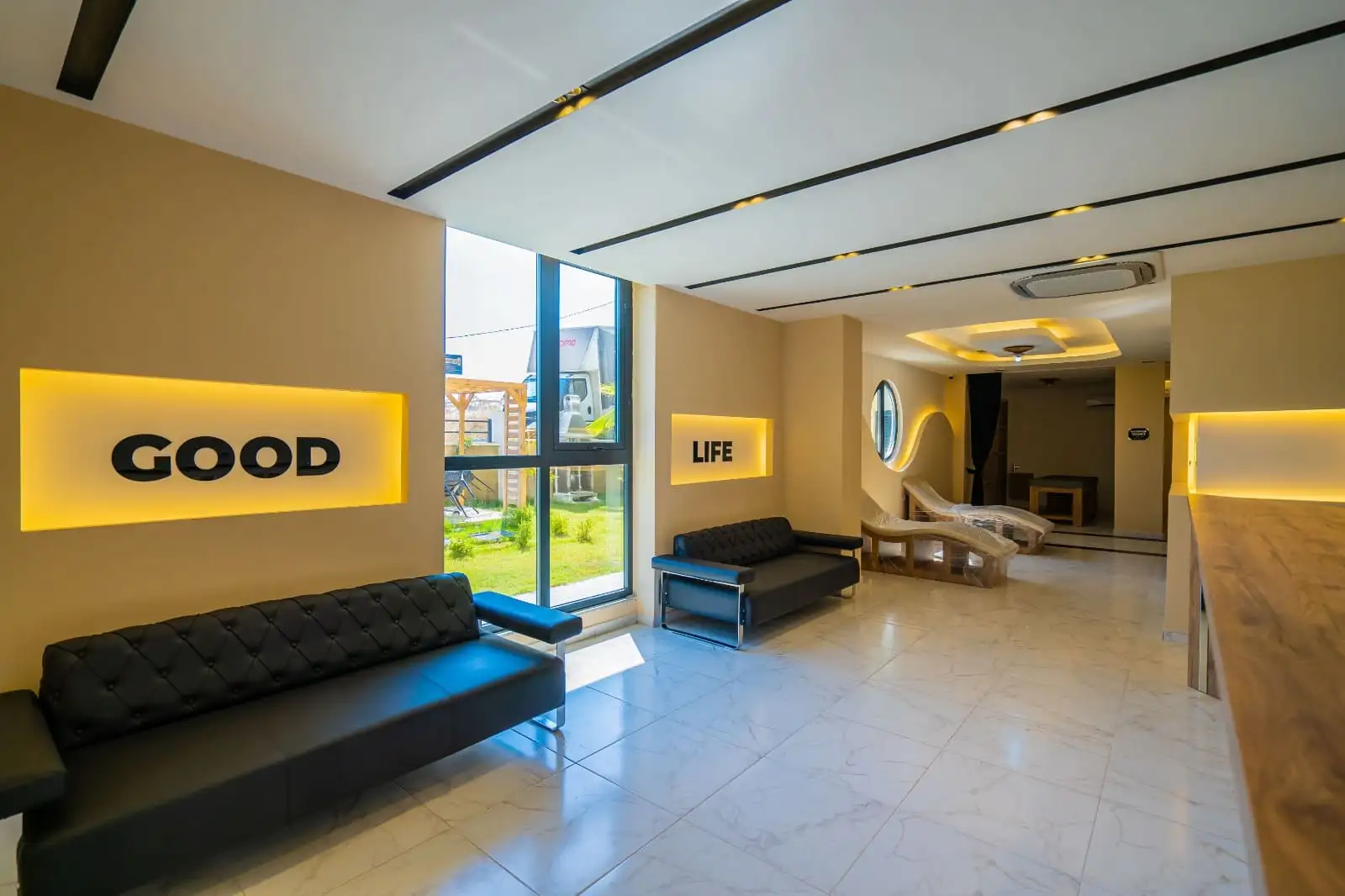 Что в комплексе: На территории комплекса расположено два 9 этажных, жилых блока, летний бассейн, крытый бассейн, хамам, сауна, римская парная, зона отдыха и барбекю, спортзал, кафе, бар, детская площадка, беседка для отдыха, барбекю, кинотеатр, шахматное поле.