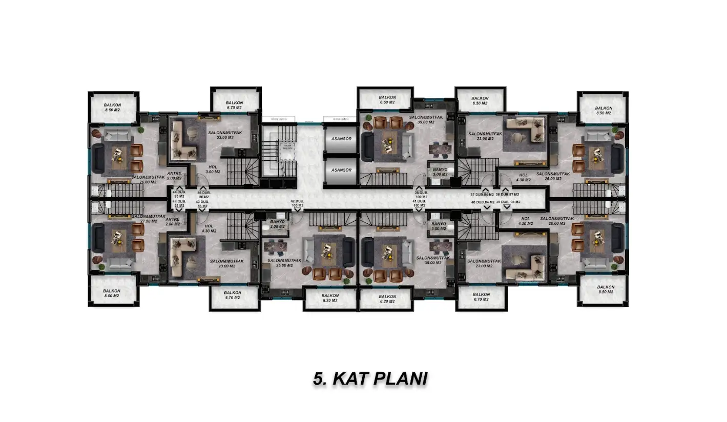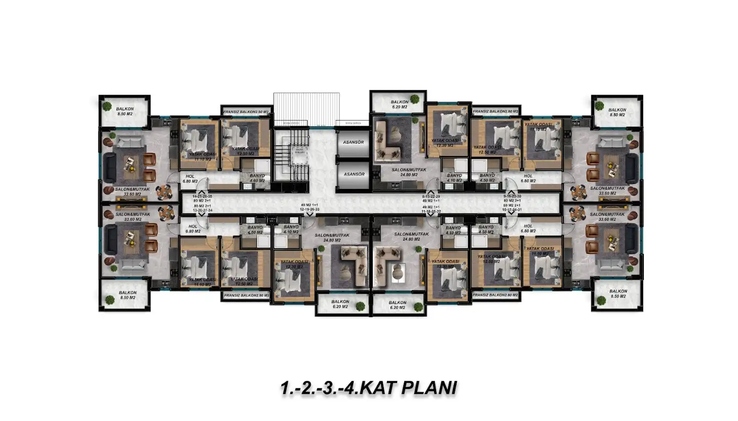 пентхаусы 2+1 площадью от 80 до 100 м2.