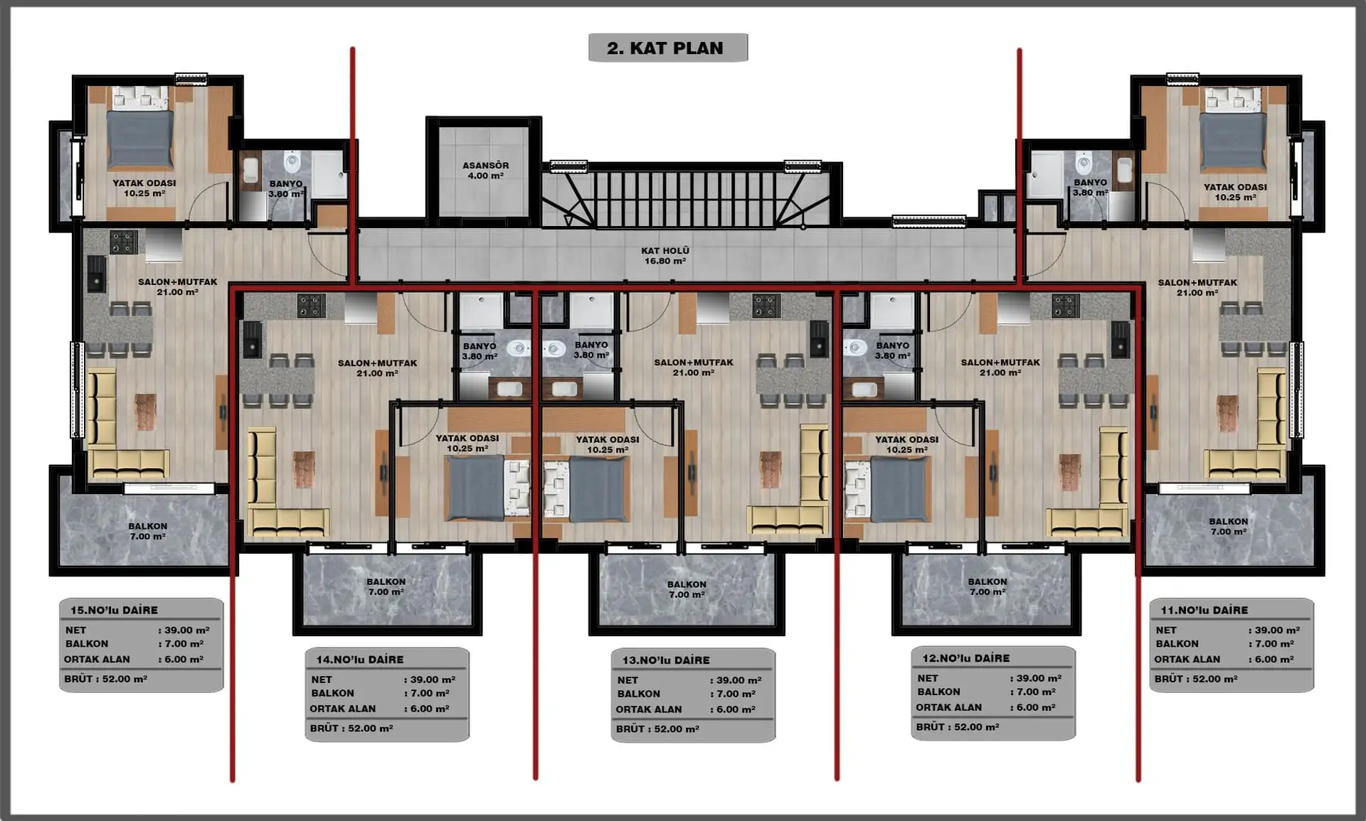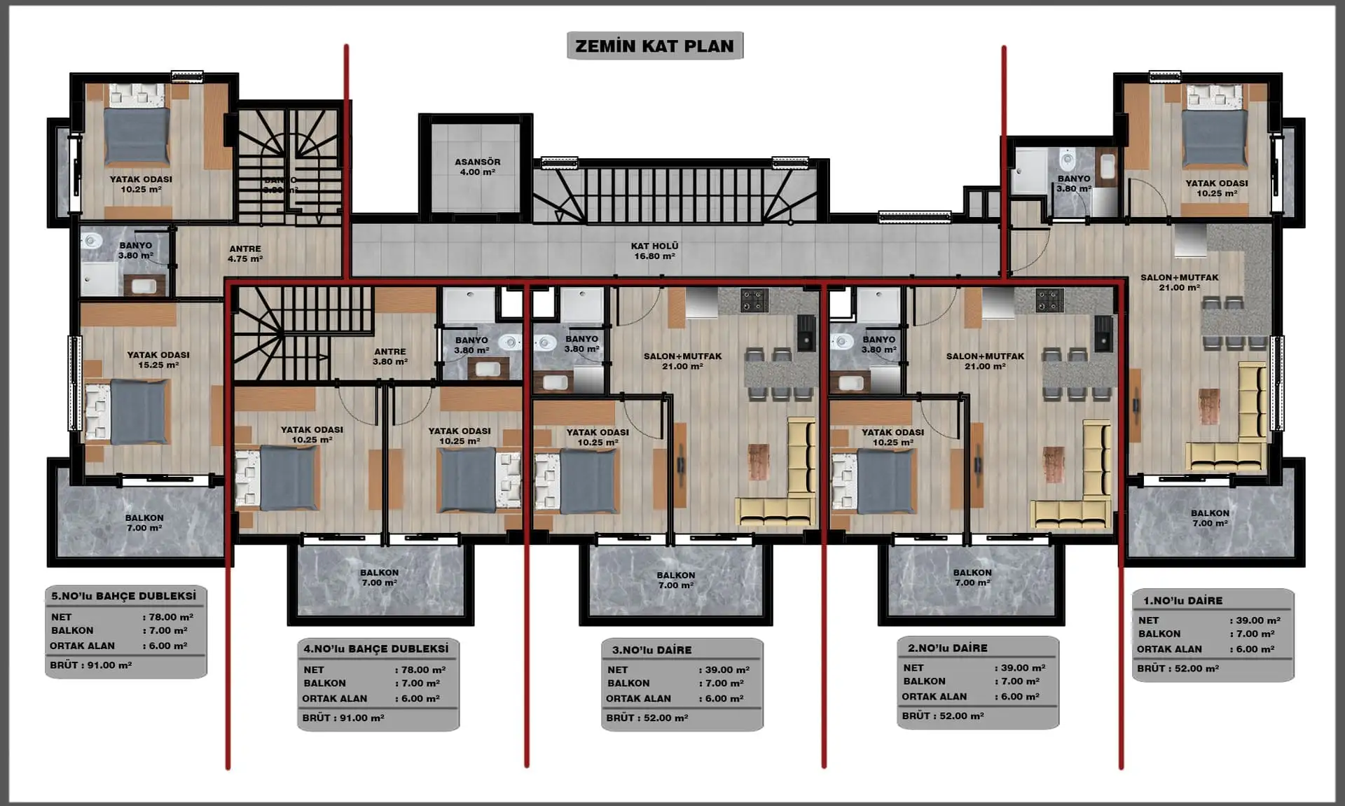 2+1 пентхаус площадью 94 м2 и 101 м2.