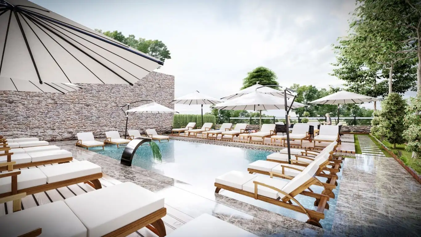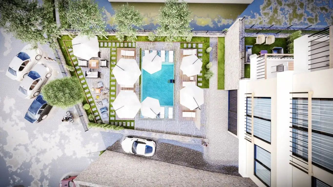 Что в комплексе: Проект будет состоять из одного блока и включать всю основную инфраструктуру, подходящую для личного отдыха и проживания в нем на постоянной основе. Открытая инфраструктура представлена открытым бассейном, зоной отдыха и открытой парковкой, а внутрення состоит из фитнес зала и сауны. С первых этажей открывается прекрасный вид на побережье.