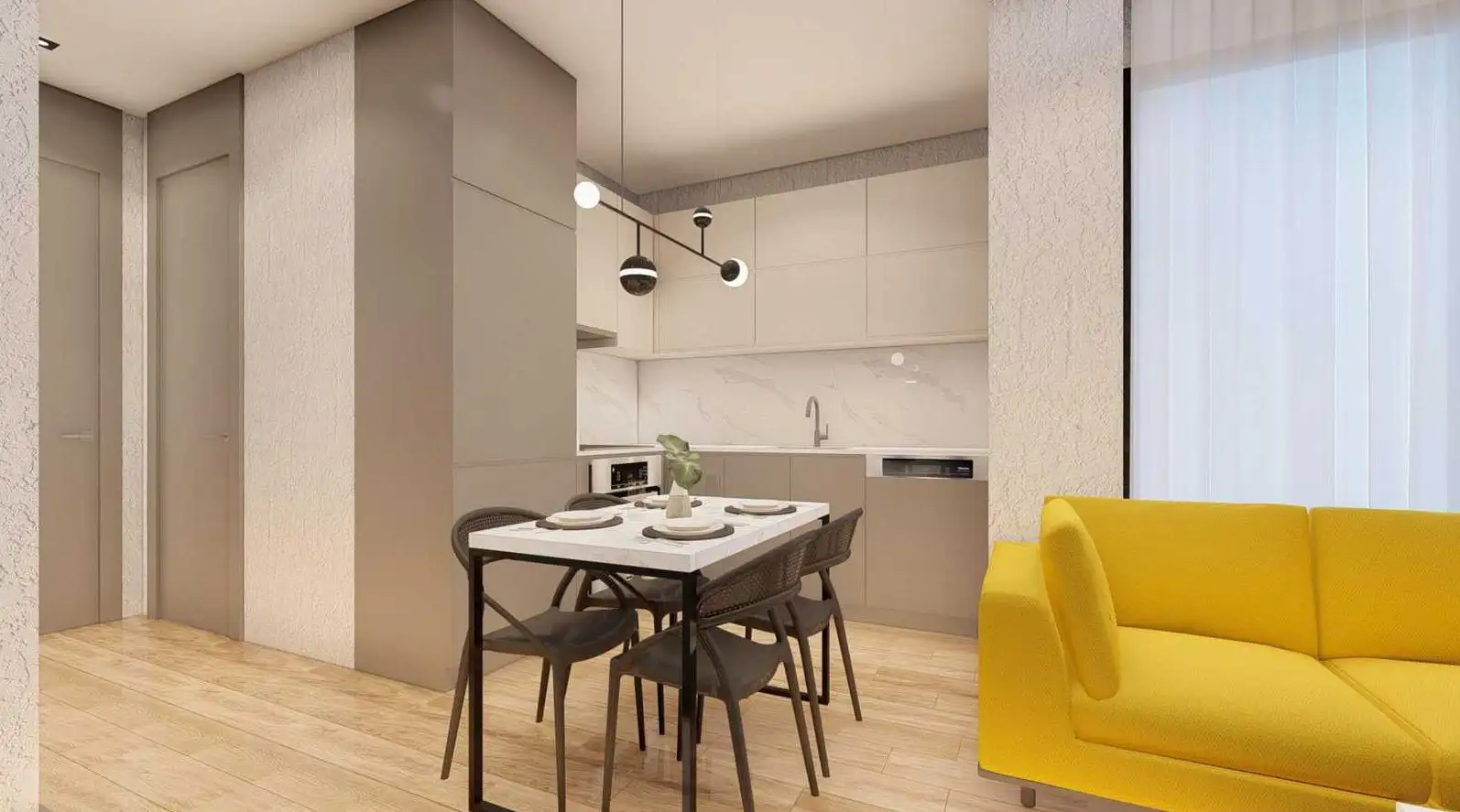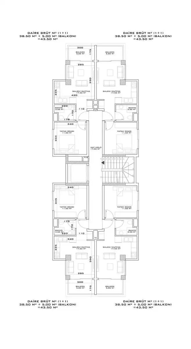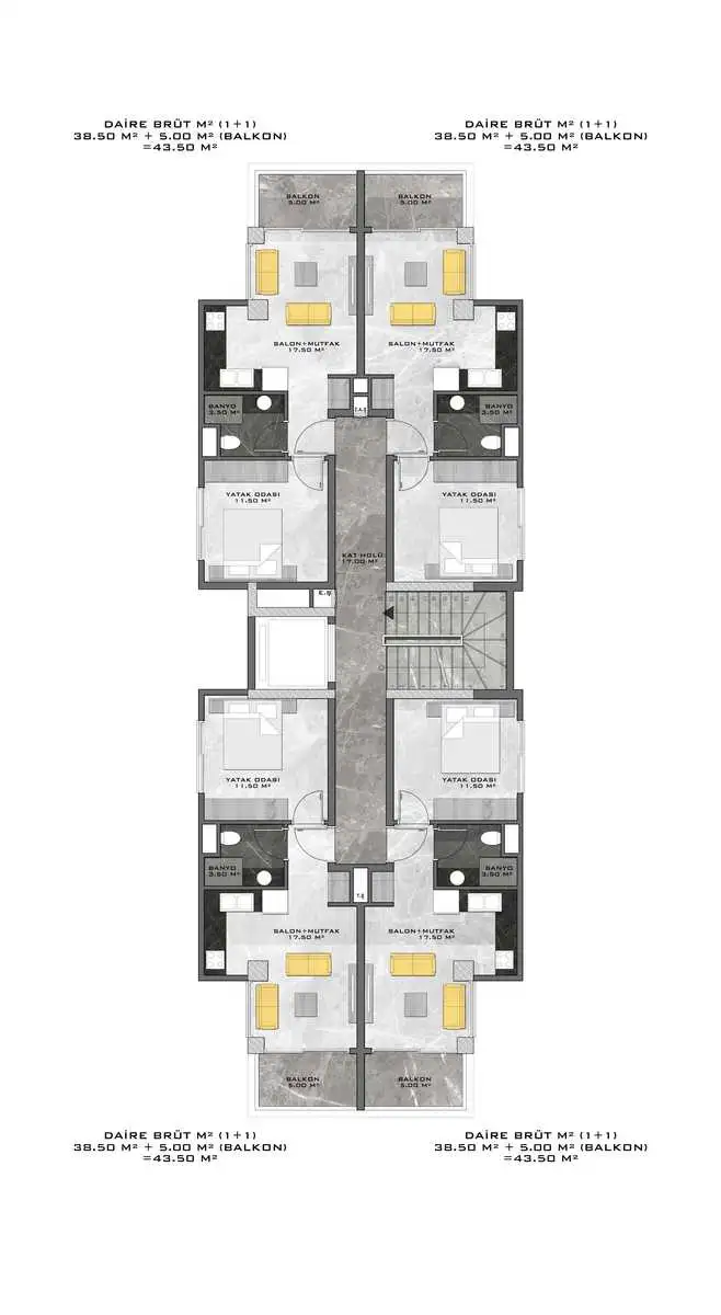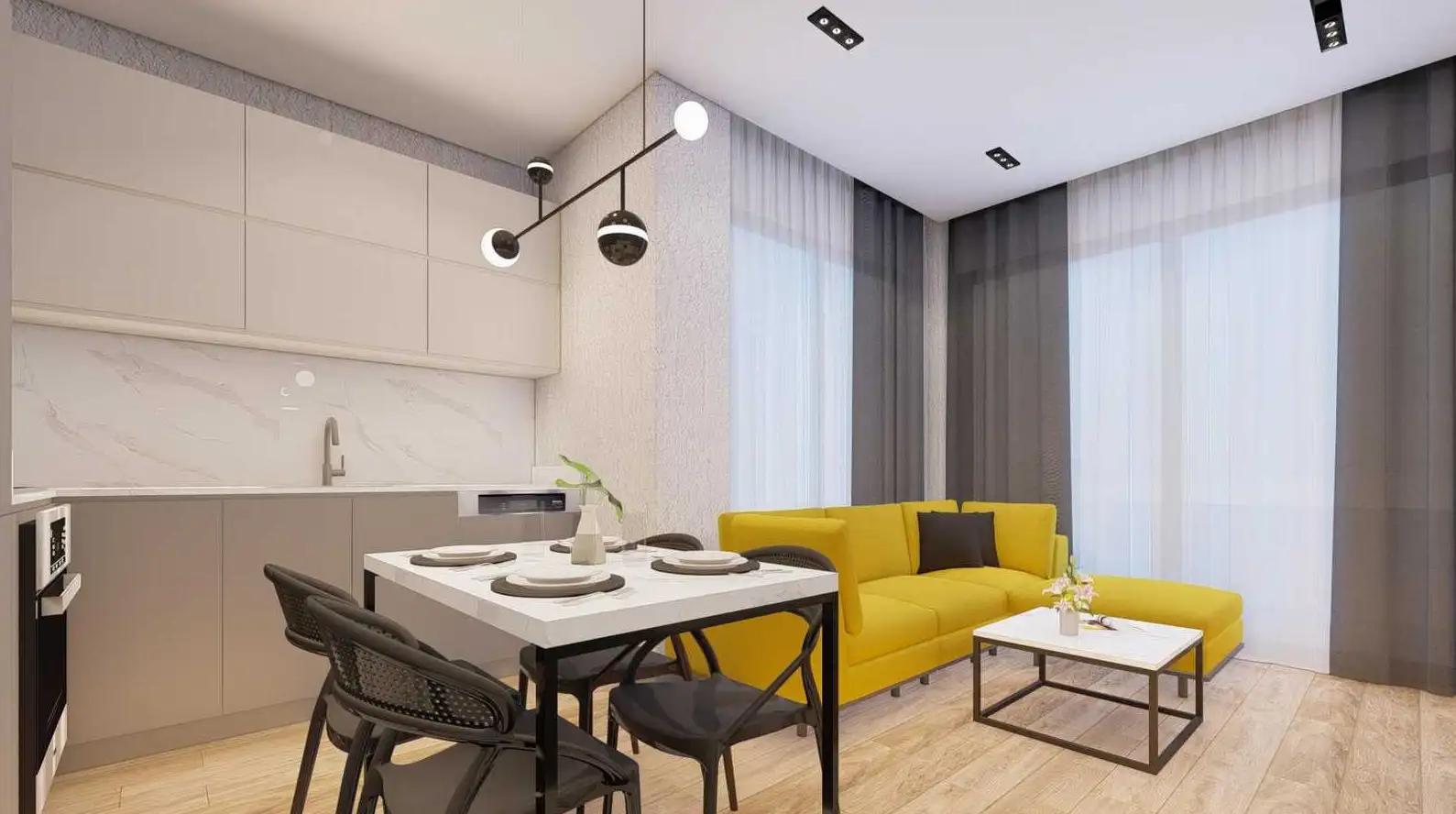 апартаменты 1+1 площадью 50 м2;