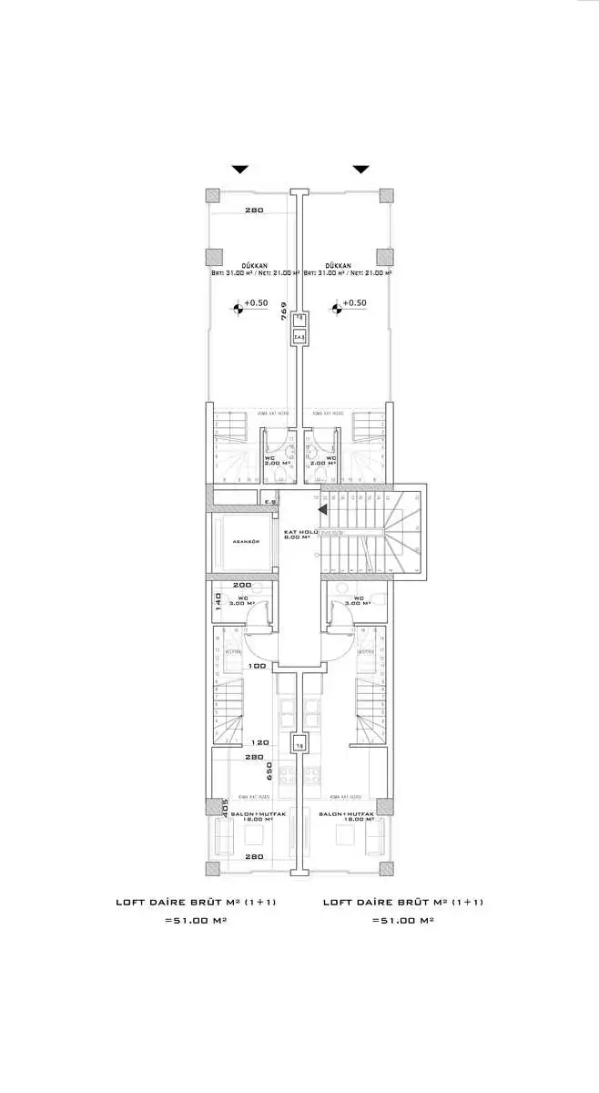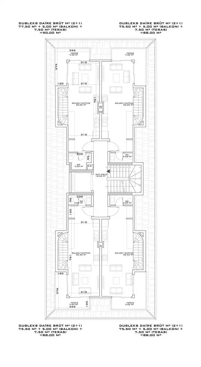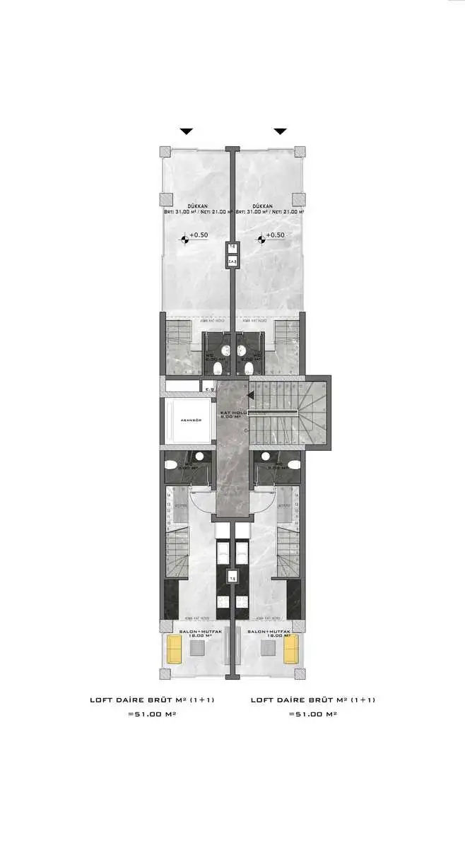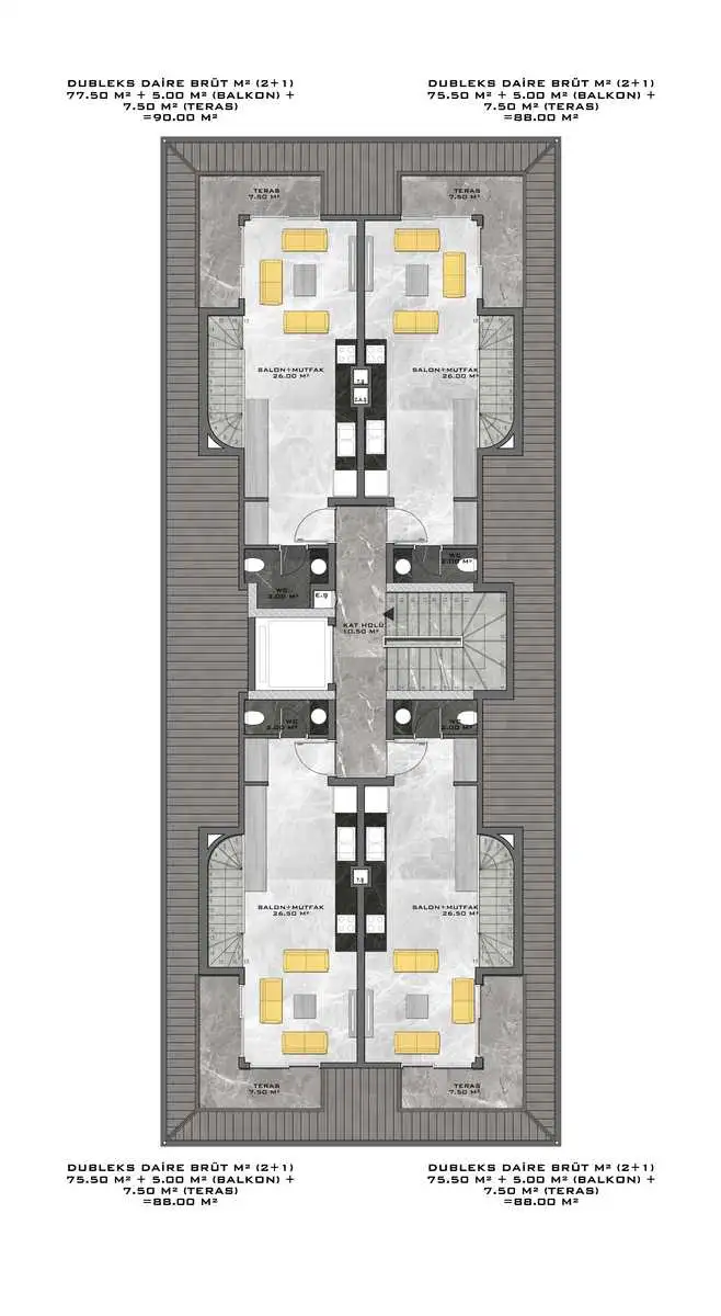 пентхаусы 2+1 площадью 88 м2.