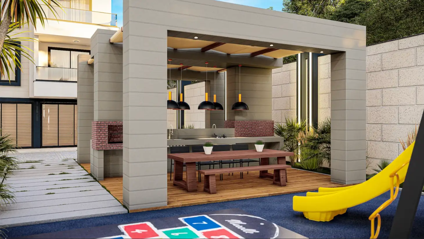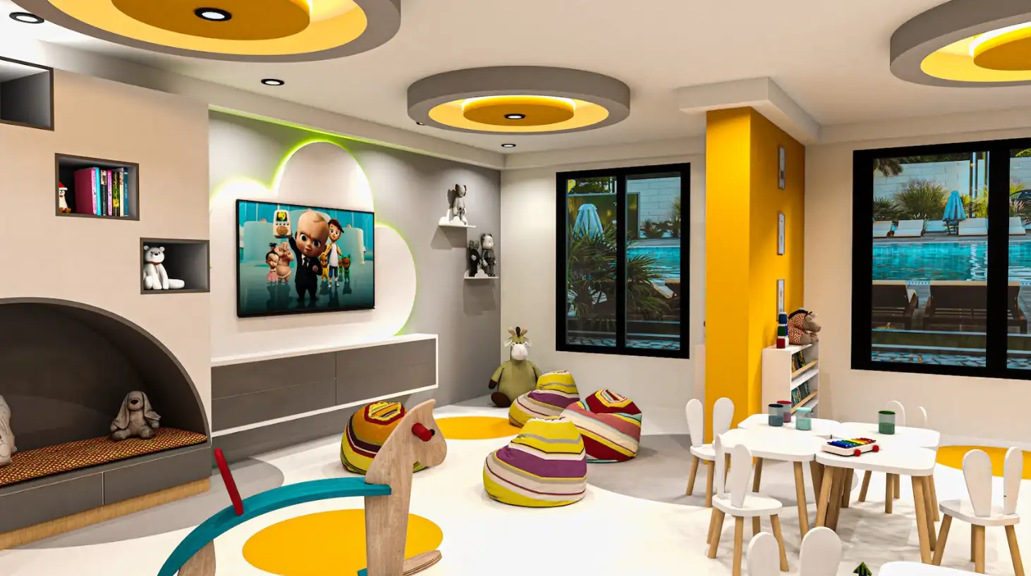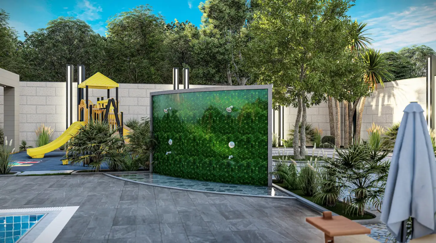 Что в комплексе: На закрытой, озелененной территории площадью 3 042 м2 будет расположен один жилой блок, открытый бассейн с водными горками, детский бассейн, зона отдыха у бассейна, детская площадка, беседки для отдыха, зона отдыха и барбекю, мини клуб, финская сауна, фитнес, открытая парковка, генератор.