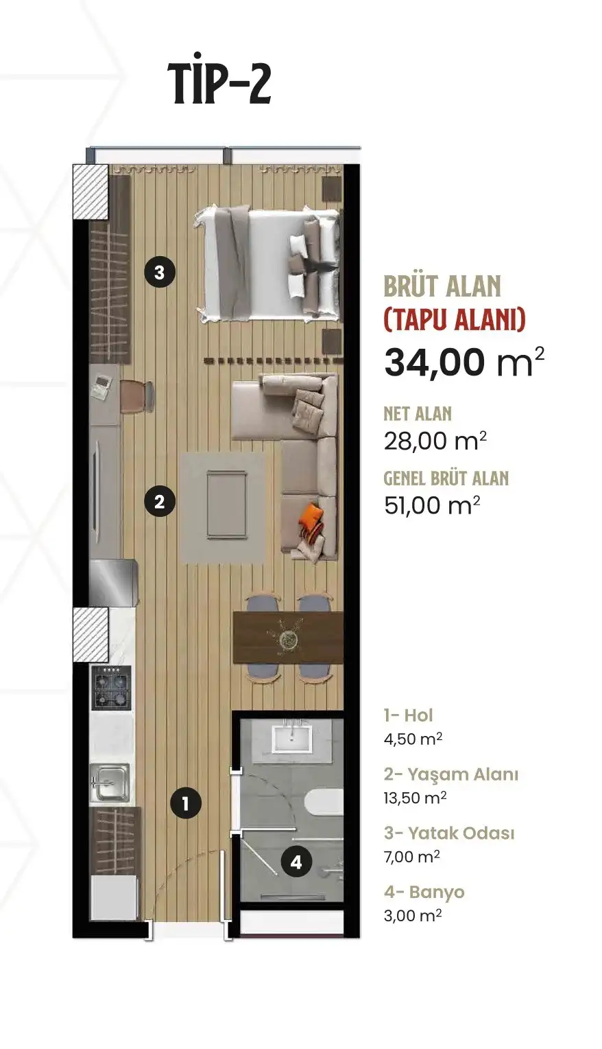 Внутри: Апартаменты в проекте представлены планировкой 1+1 и общей площадью 34 кв.м. Большой плюс этого проекта заключается в том, что данные апартаменты могут использоваться как офисные помещения или как жилое пространство для аренды. Каждое помещение сдается в полной чистовой отделке премиум класса.