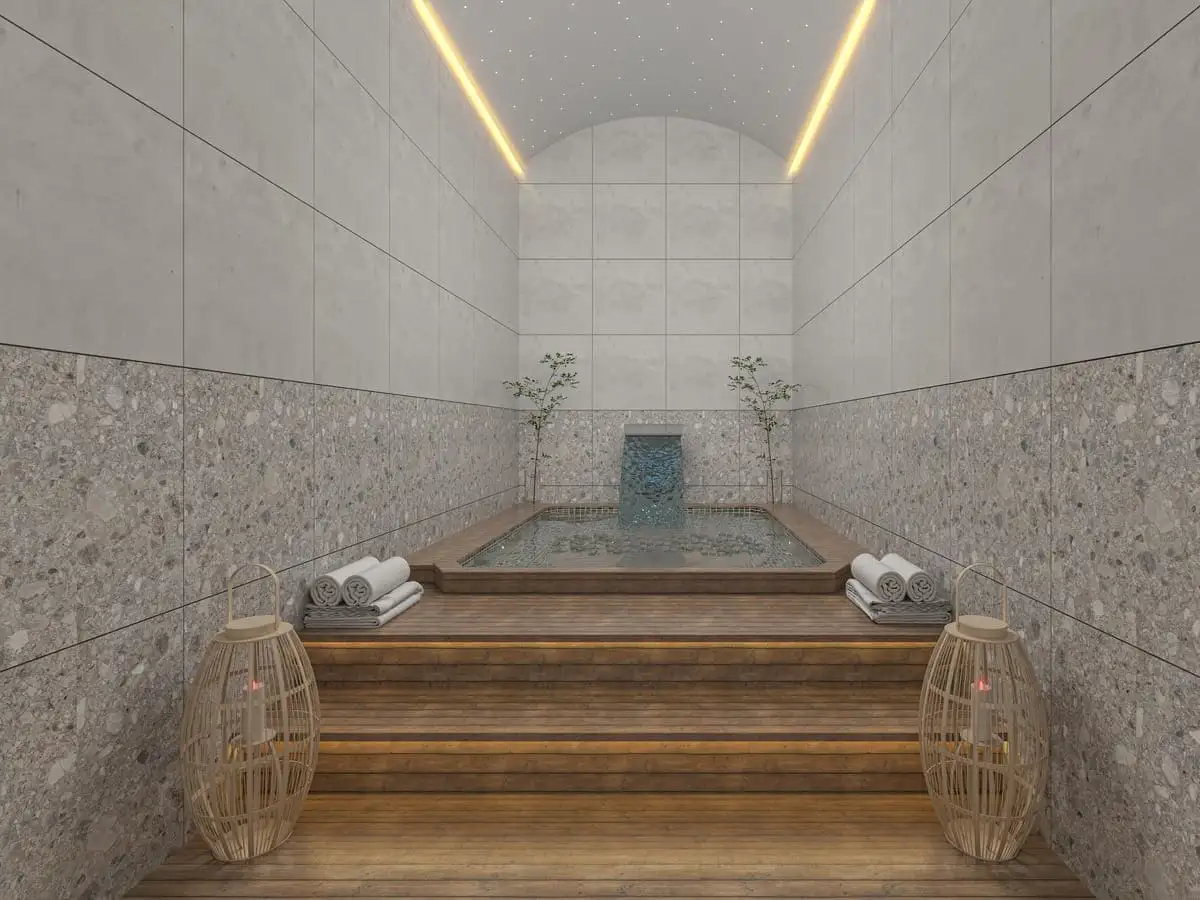 Что в комплексе: На закрытой озелененной территории площадью 3 900 м2 будут расположены два жилых блока, открытый бассейн, зона отдыха у бассейна, детская площадка, теннисный корт, зона отдыха и барбекю, открытая парковка, фитнес, римская парная, финская сауна, хамам. В комплексе будут установлены камеры видеонаблюдения; будет работать охрана.
