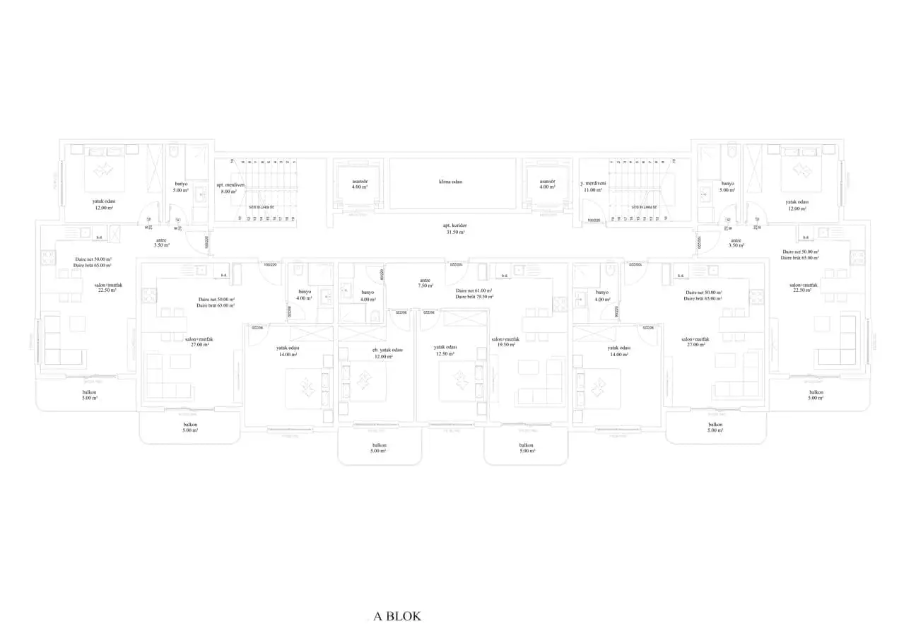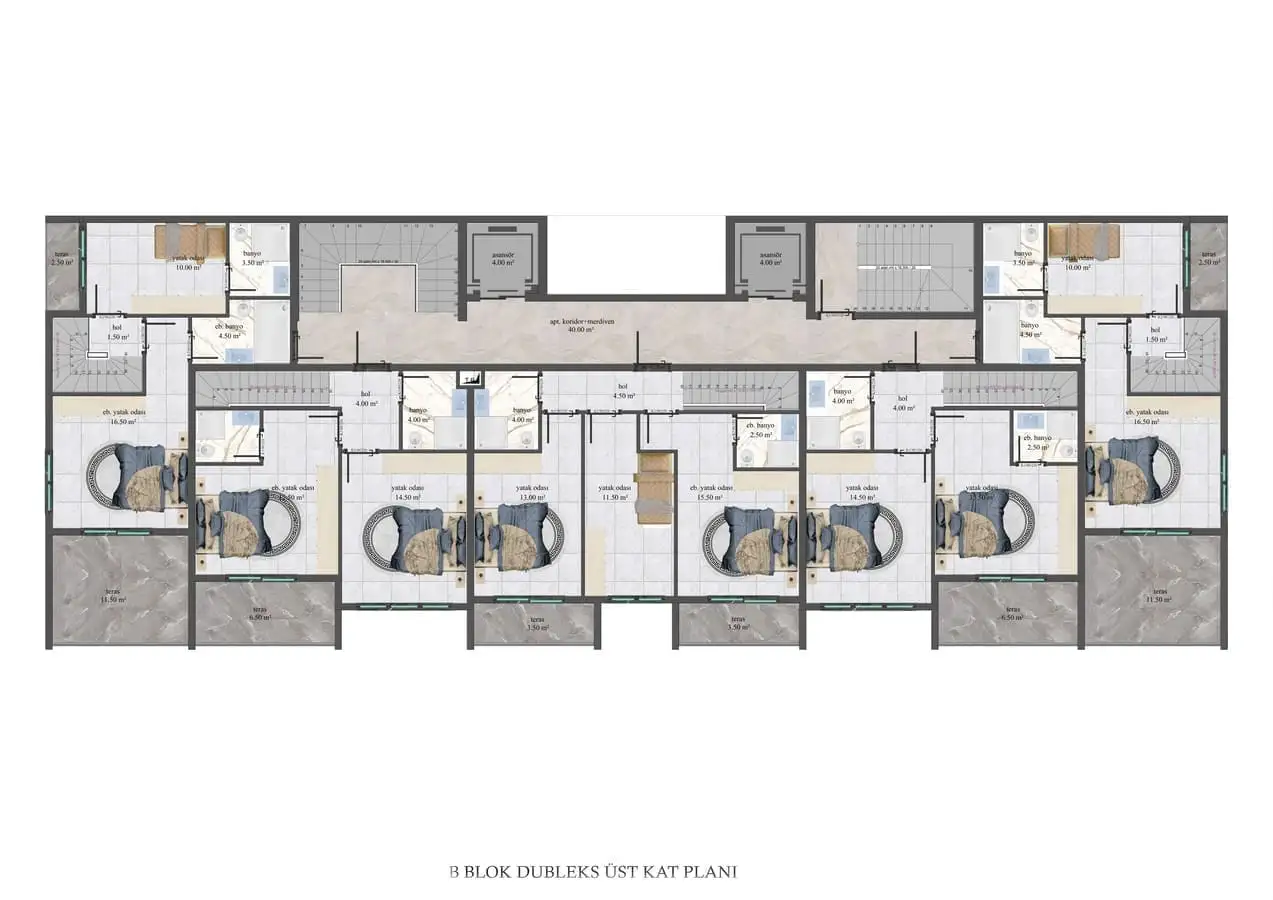 2+1 пентхаусы площадью 130 м2;