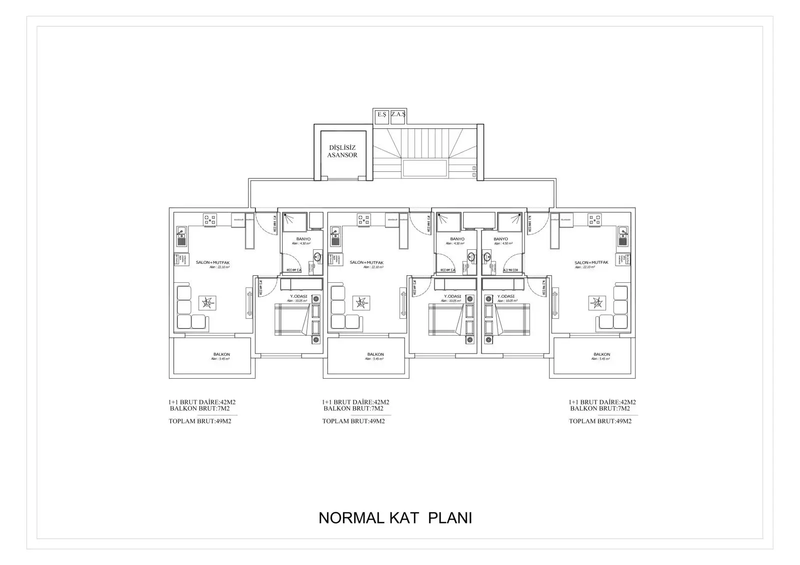Квартиры 1+1, площадью 52 м2;