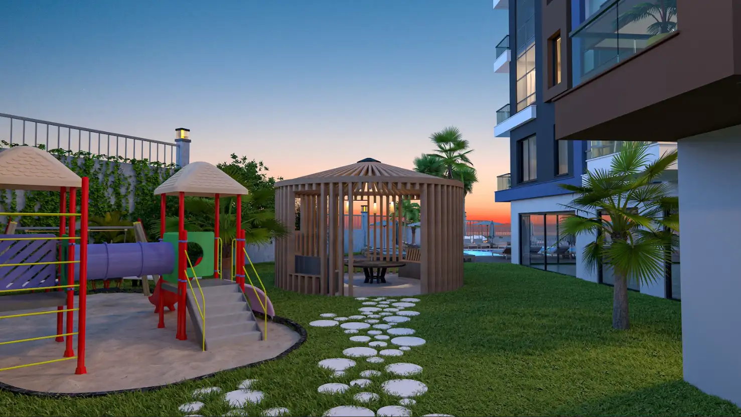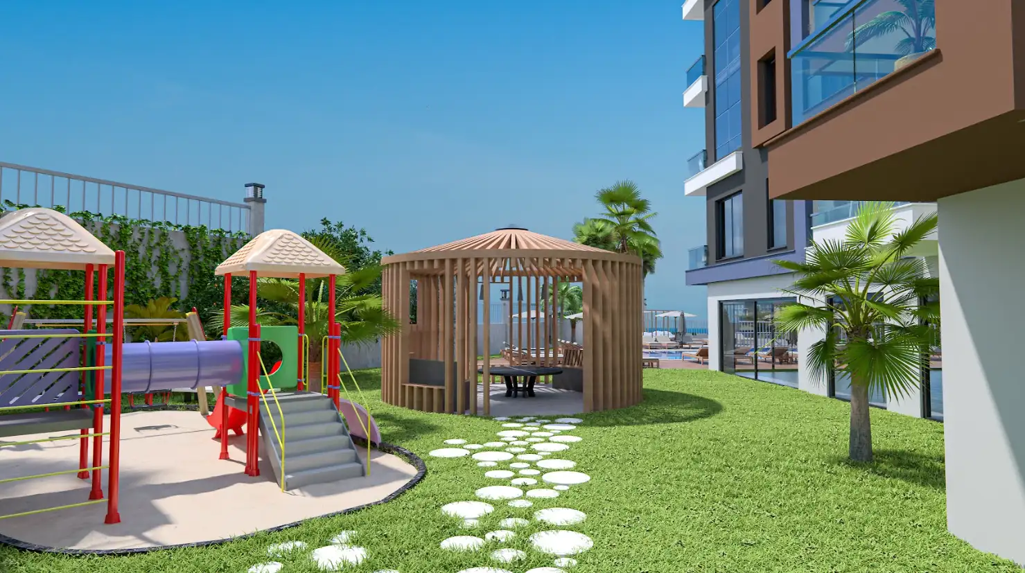 Что в комплексе: Комплекс состоит из одного блока, и благодаря своей локации, он предоставляет панорамные виды на море прямо из зоны инфраструктуры. Придомовая территория включает в себя открытый бассейн с беседками, детскую площадку, зону барбекю, открытую спортивную площадку и парковку. Кроме того, жильцы комплекса имеют доступ ко всей инфраструктуре 5-звездочного отеля, расположенного рядом.