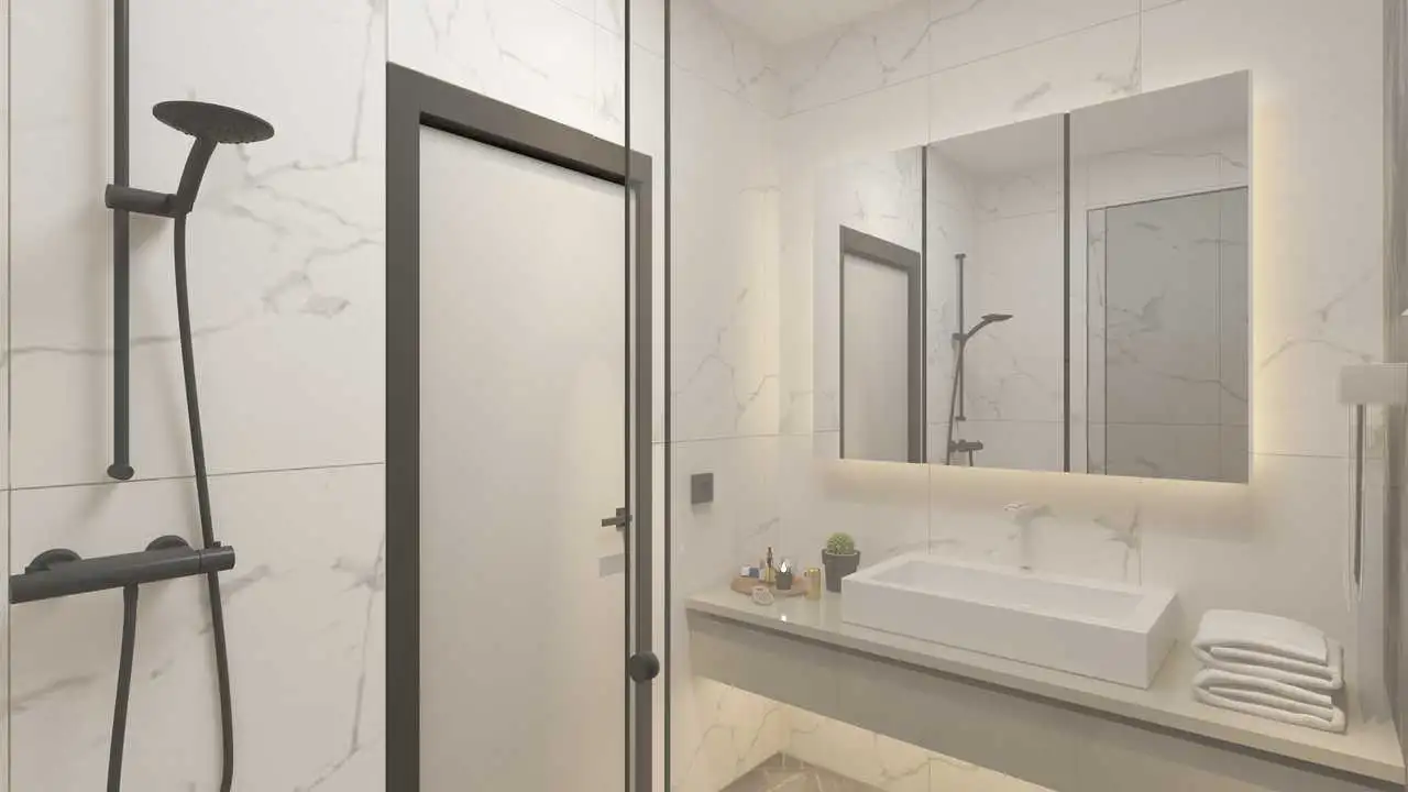 Апартаменты планировкой 1+1 площадью от 50 до 53 м2 это гостиная, спальня, кухня открытой планировки, ванная комната и балкон;