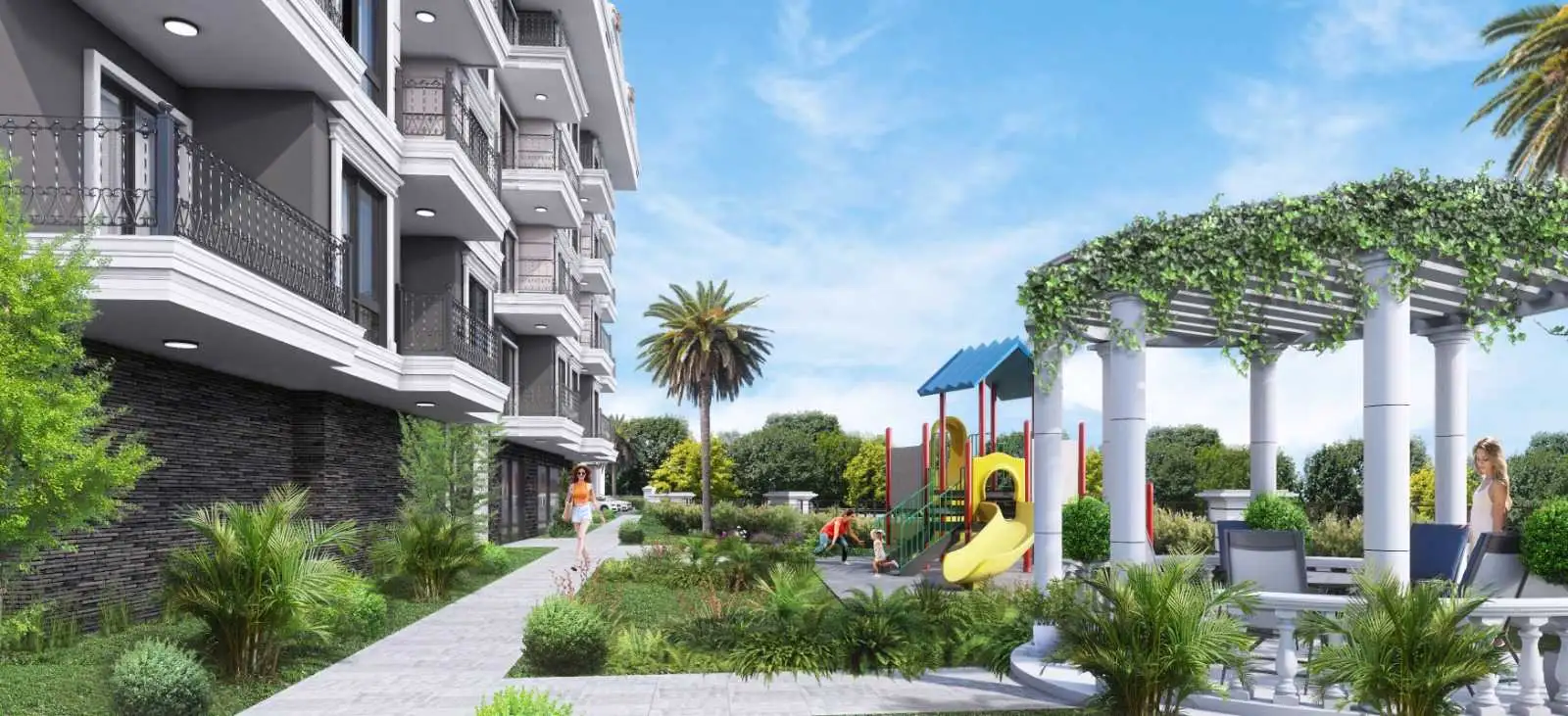 Вся социальная инфраструктура района находится в шаговой доступности. Торговый центр ALANYUM, гипермаркет METRO, школа, городской госпиталь, а также пляж Портакал находятся в нескольких минутах ходьбы от комплекса.
